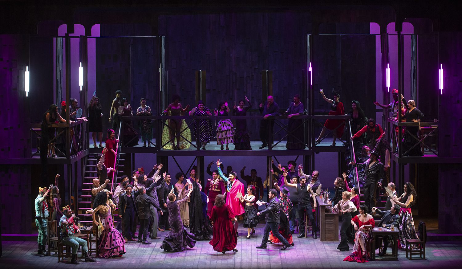 En la escena de la Taberna de Lillas Pastia, se optó por una gran diversidad, tal vez para resaltar lo cosmopolita de una taberna sevillana de los 90, con algo de café con piernas, un par de travestis, un cowboy, un garzón a pecho descubierto, lo que, a nuestro parecer, tal particular diversidad fue un tanto excesiva, ya que además debemos sumar los “bailaores” y parroquianos.