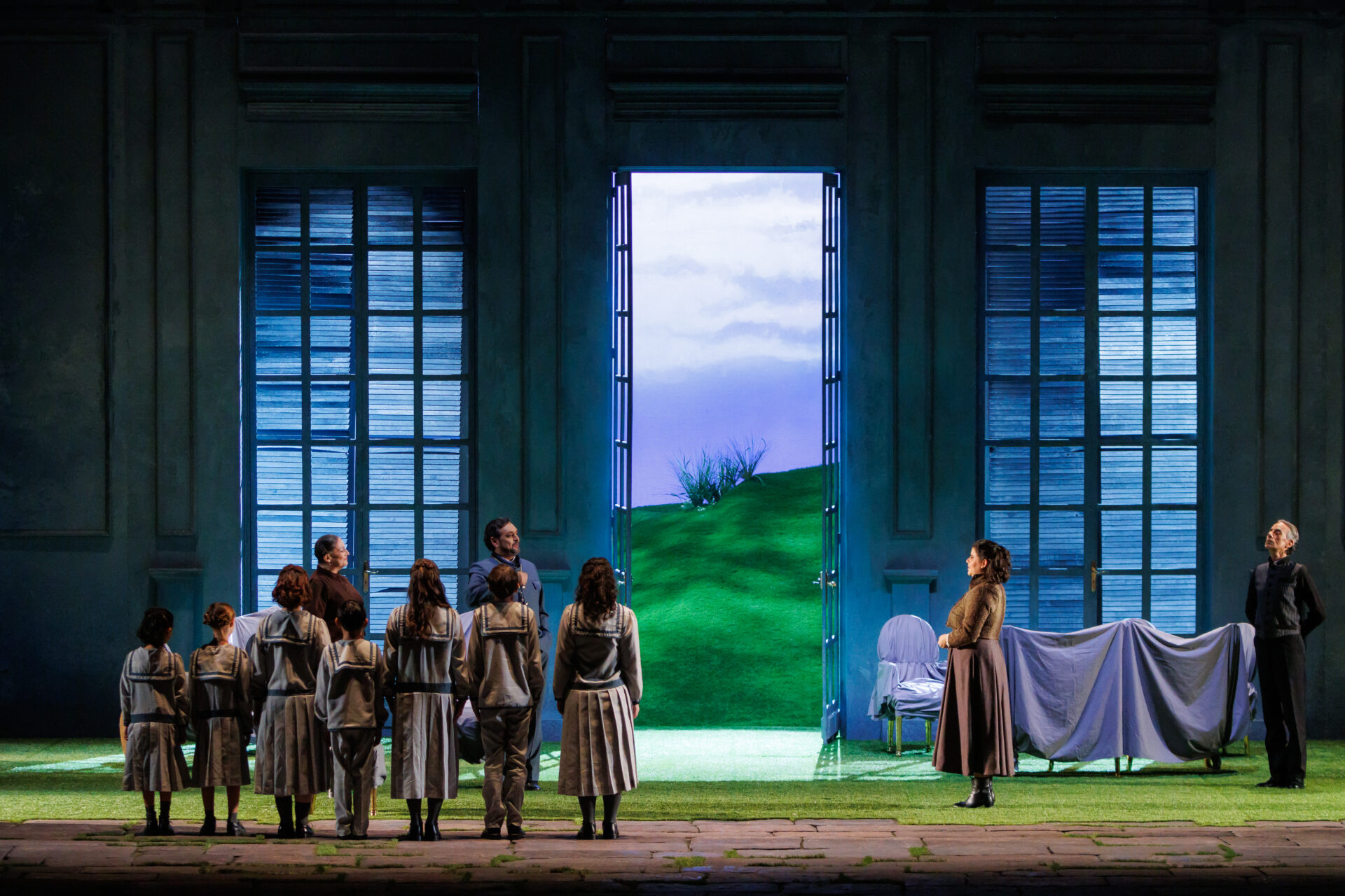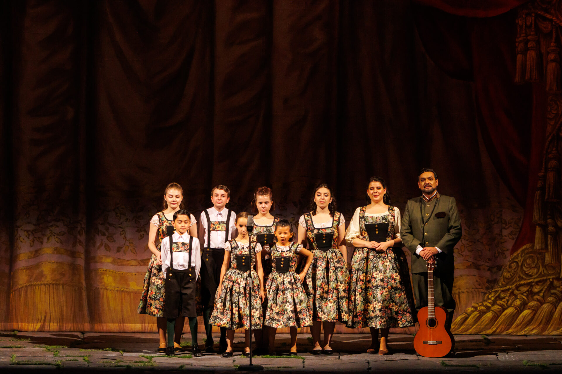La Familia von Trapp en el Festival de canto, que les sirvió para huir, a la derecha María (Camila Guggiana) y el capitán von Trapp (Patricio Sabaté) segundo elenco foto Alberto Díaz