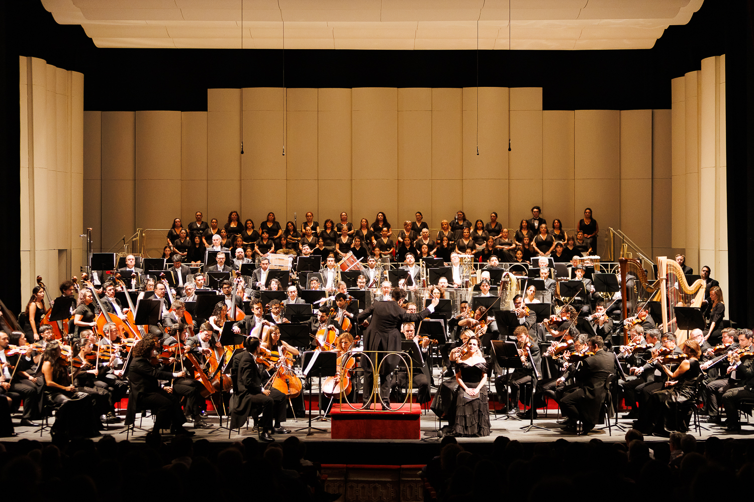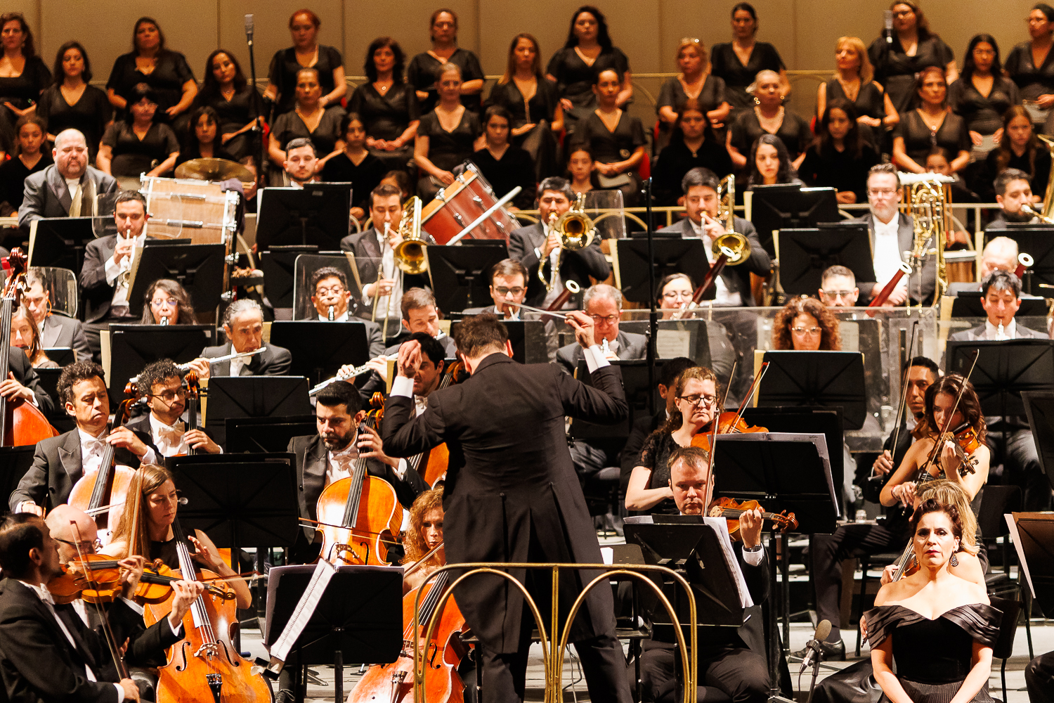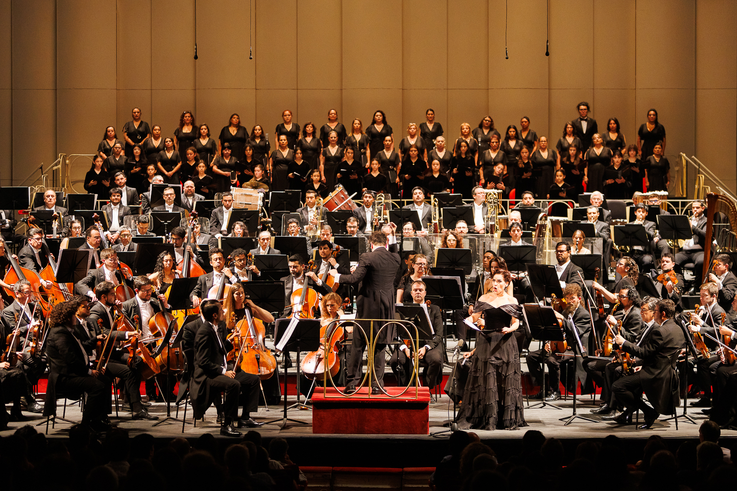 Paolo Bortolameolli, Evelyn Ramírez, los Coros y la Orquesta Filarmónica interpretando Mahler. foto Alberto Díaz