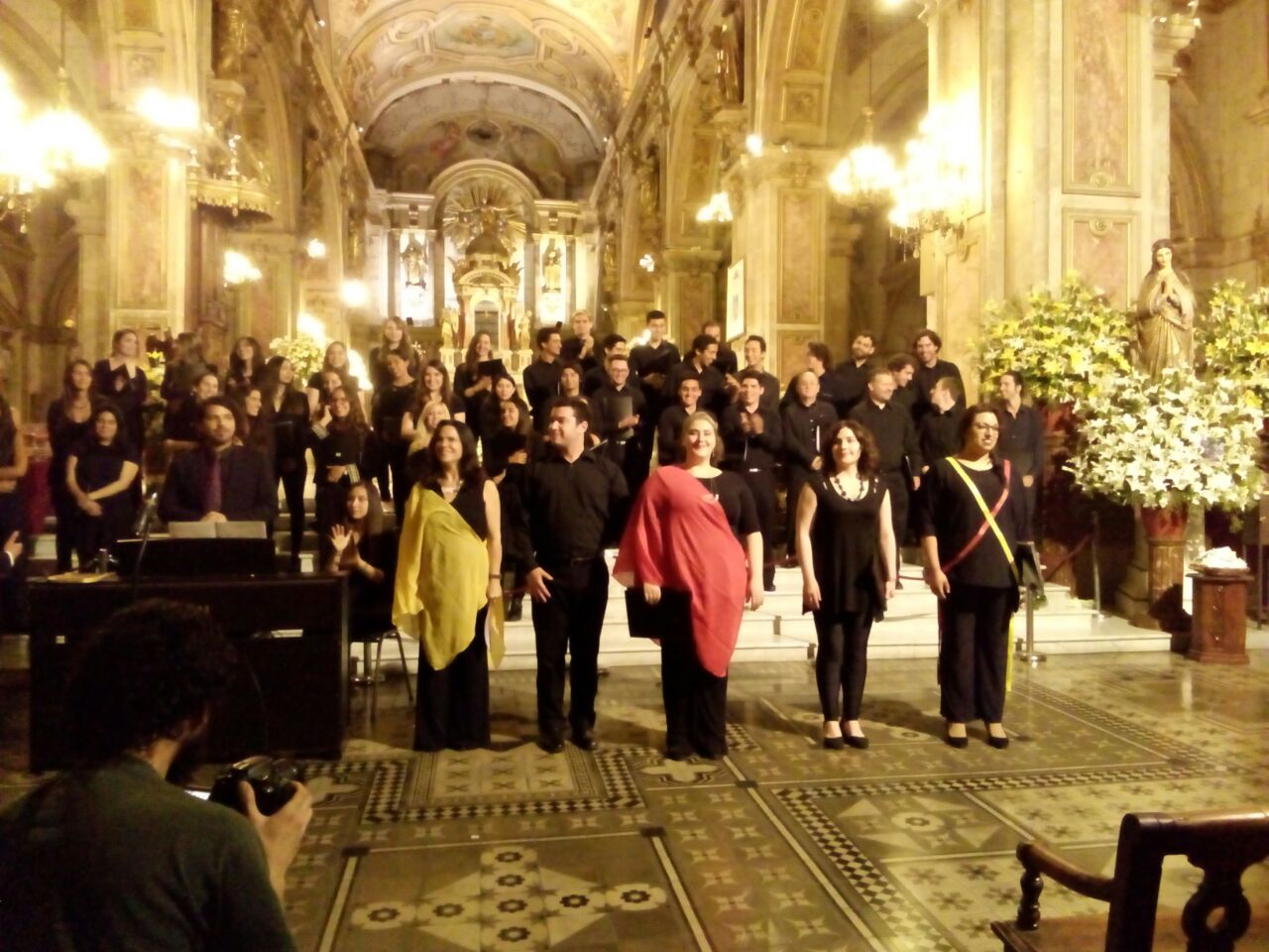 De la misa llamada “Heiligmesse” de Franz Joseph Haydn, cantaron el “Goria” con teclado, en excelente estilo clásico y dicción. Luego se nos ofreció otro “Gloria”, ahora del Clasicismo americano obra muy sui generis perteneciente a la Misa en Fa del primer compositor mulato nacido en Brasil, José Joaquim Emérico Lobo de Mesquita (segunda mitad de 1700), acompañado de teclado. También este trozo, tan distinto y atrayente, pues en parte insinúa un ritmo de baile, fue muy bien interpretada con acertado estilo y ritmo.