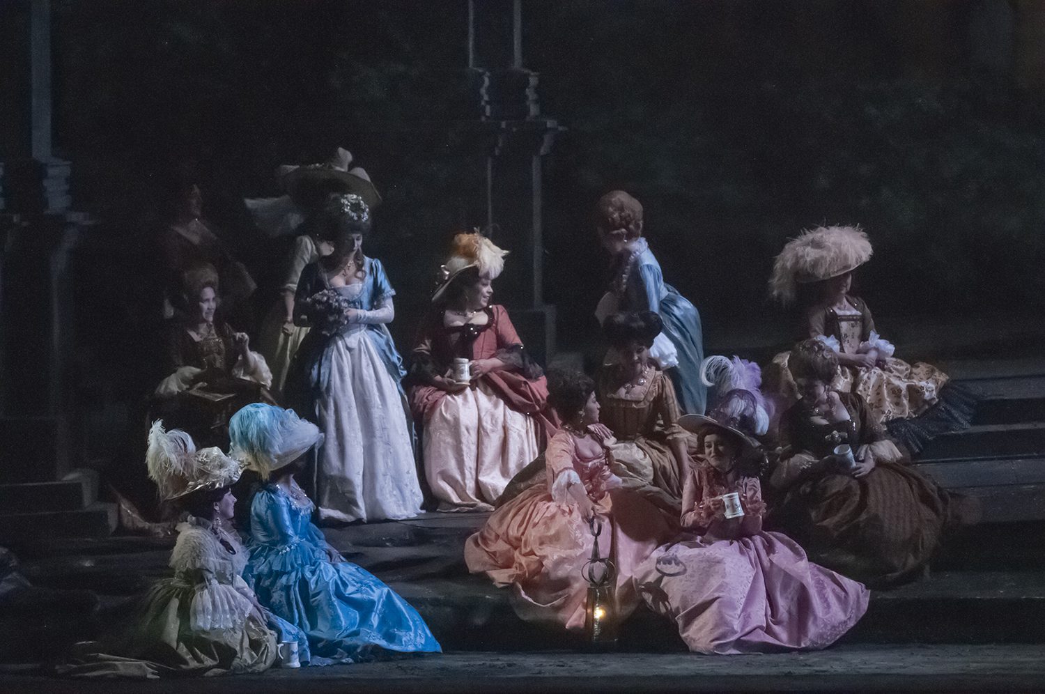 No obstante ahora mencionaremos una muy importante, que ocurre en la última escena, cuando Don Giovanni junto a su criado Leporello, esperan la llegada de El Comendador asesinado por el burlador al inicio de la ópera, y que en un acto de extrema audacia le invita a cenar, durante la escena en el cementerio.