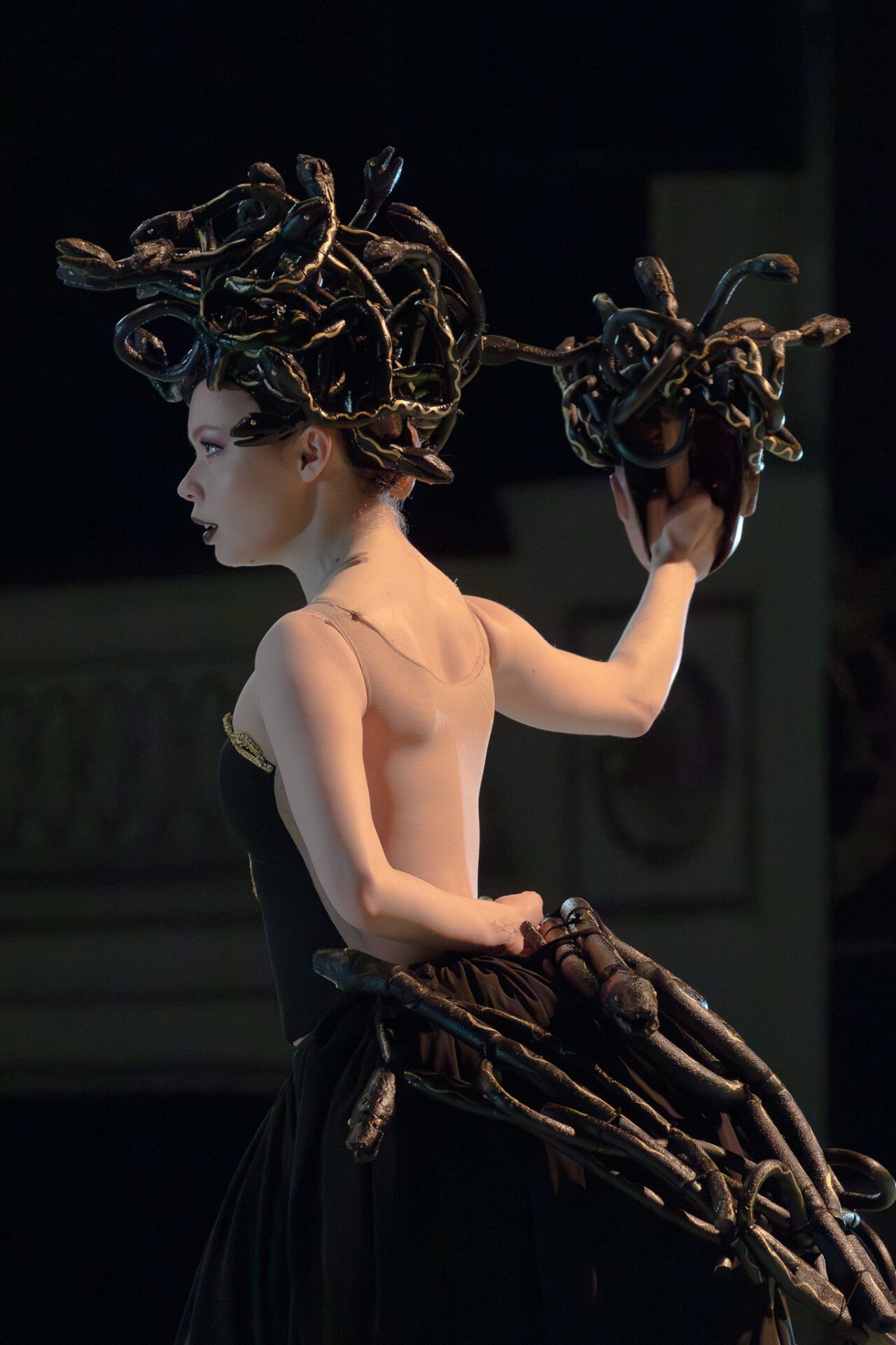 Los roles de Perseo y Medusa fueron asumidos por Carlos Aracena y Karen Chambers, con gran fuerza, prestancia y carácter, logrando un gran aplauso al finalizar su parte.