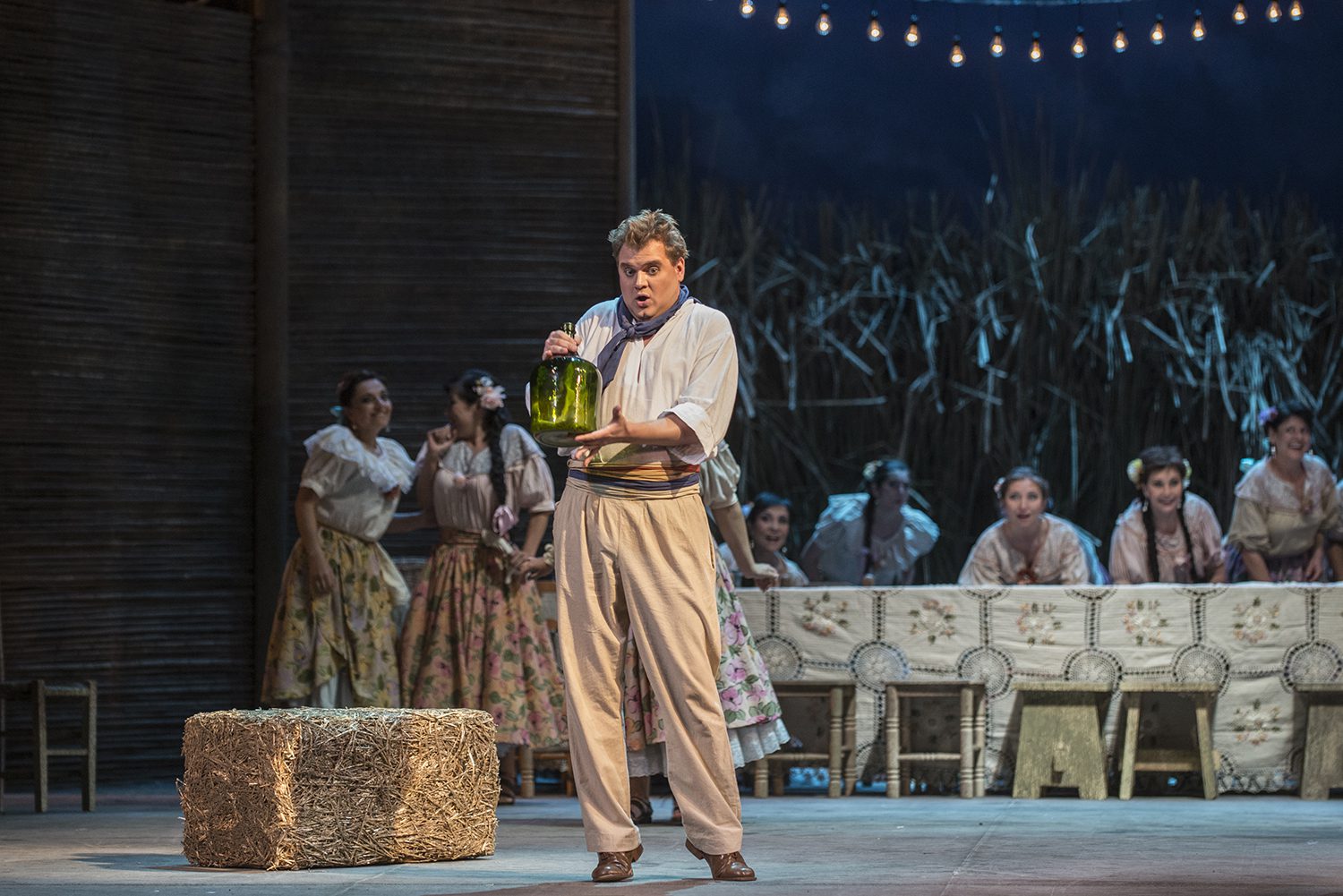 La reconocida solvencia de Patricio Sabaté, le hizo triunfar una vez más, ahora como Belcore, actuando con simpática arrogancia, frente a las mujeres que quiere conquistar.