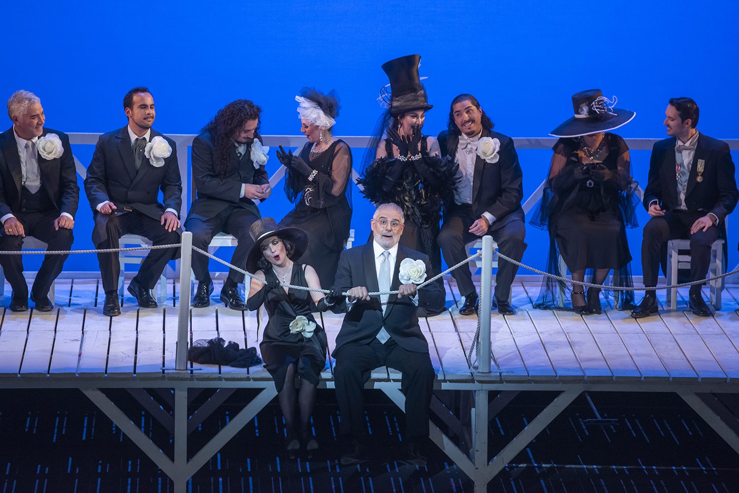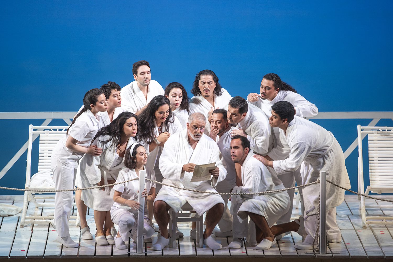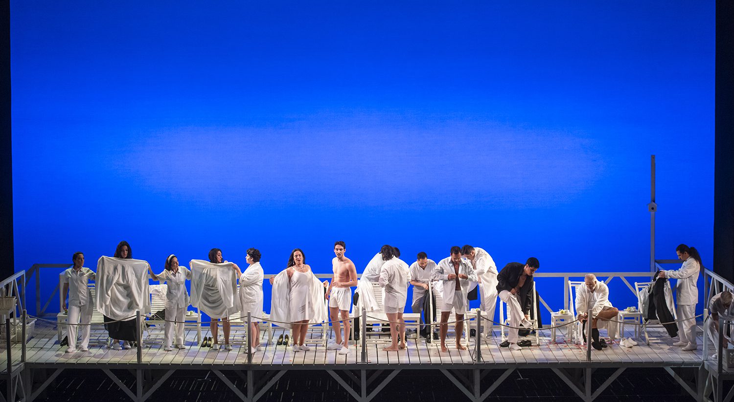 El gran concertato del final del primer acto, todos cantan mientras se desvisten y visten, en una escena, que sin duda se convertirá en antolólogica, tanto por lo cómica, como por su bien resuelta dificultad. foto Patricio Melo