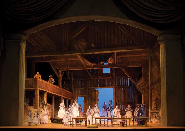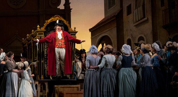 Esta ópera, sin duda una de las obras maestras del género bufo o cómico, fue abordada con ironía, humor, y detalles minuciosos en la régie de Bartlett Sher, que tuvo como marco la hermosa escenografía de Michael Yeargan, junto al estupendo vestuario de Catherine Zuber y la iluminación de Jennifer Tipton.