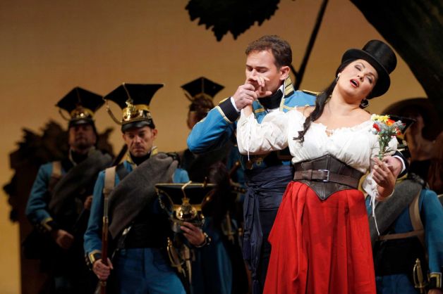 Creemos de importancia destacar, que las producciones del Met. debieron adecuarse a las transmisiones en HD para muchos países del mundo, debido a que las cámaras hacen acercamientos tanto a rostros como a detalles del vestuario, del mismo modo la actuación de los cantantes cobra gran importancia, incluso en la gesticulación de los personajes, quienes deben actuar no solo para el teatro, también tienen que hacerlo, entre comillas, para la televisión, y es allí donde radica la fuerza de esta estupenda régie de Bartlett Sher, detalles imperceptible en el teatro, aquí cobran radical importancia; la dirección de escena incidió no solo en los protagonistas, fue escrupuloso también con el coro y los figurantes.