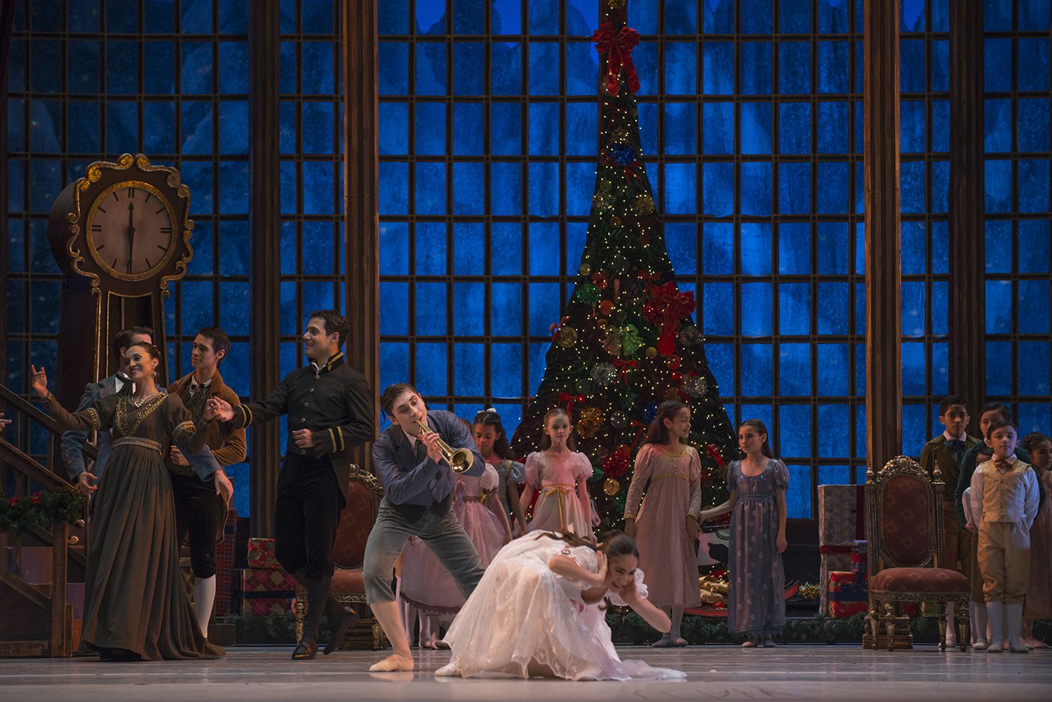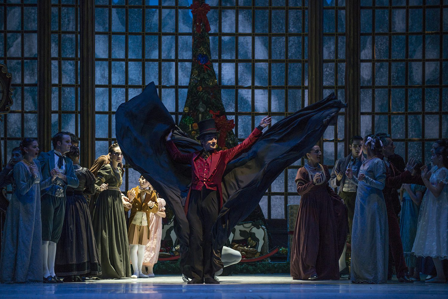 Pinto da inicio a su coreografía en el mundo de la fantasía donde Drosselmeyer convoca a sus elfos asistentes para que le ayuden a elaborar su fantástica visita a la familia de los hermanos en esa Navidad.