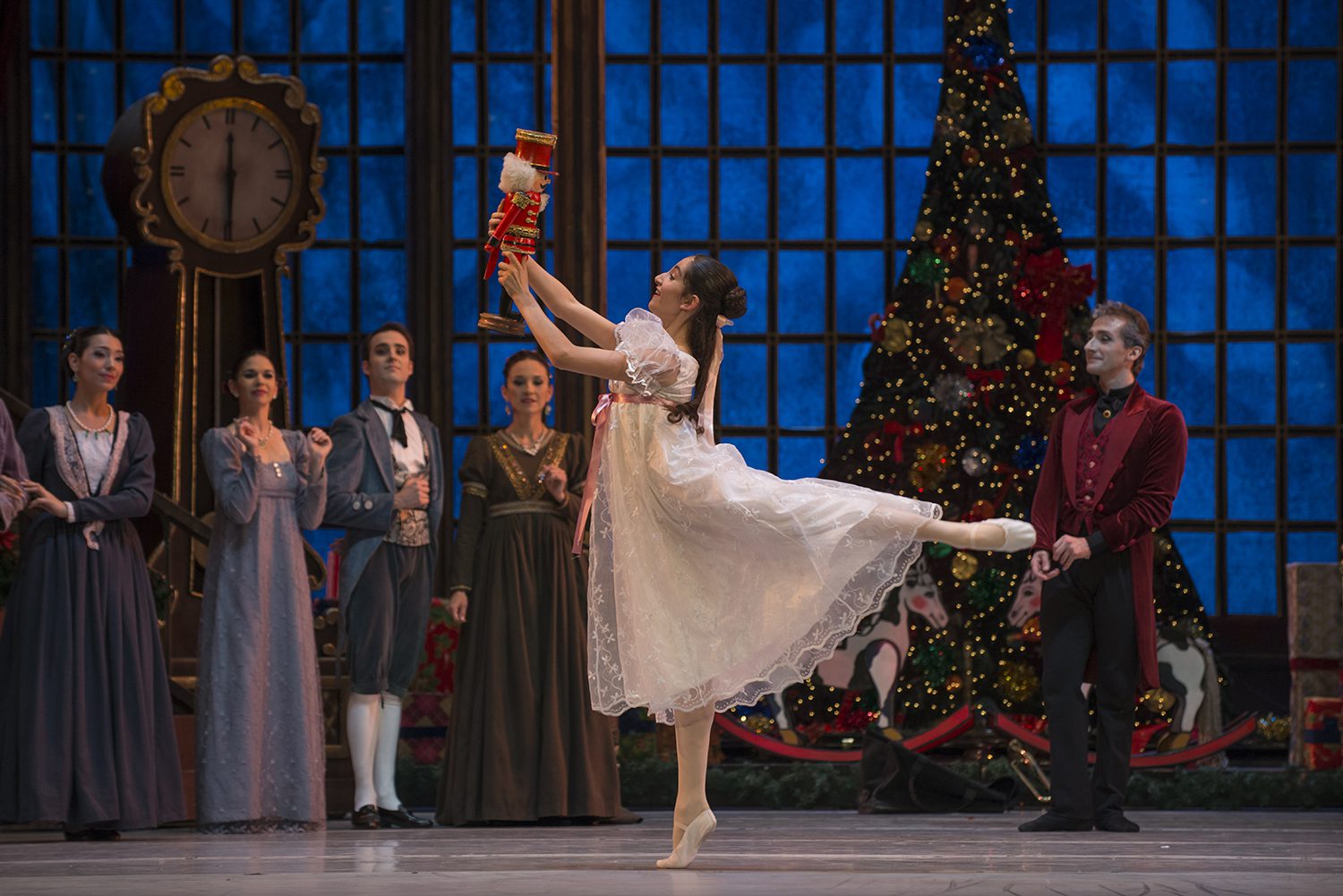 En la bella escenografía y vestuario de Pablo Núñez, se desarrolla la historia donde dos hermanos Fritz y Clara celebrarán la Navidad junto a sus familiares, fiesta en la que Clara recibirá de regalo un Cascanueces, que le robará el corazón, para luego en sueños hará que ella y su hermano tengan un fantástico viaje.