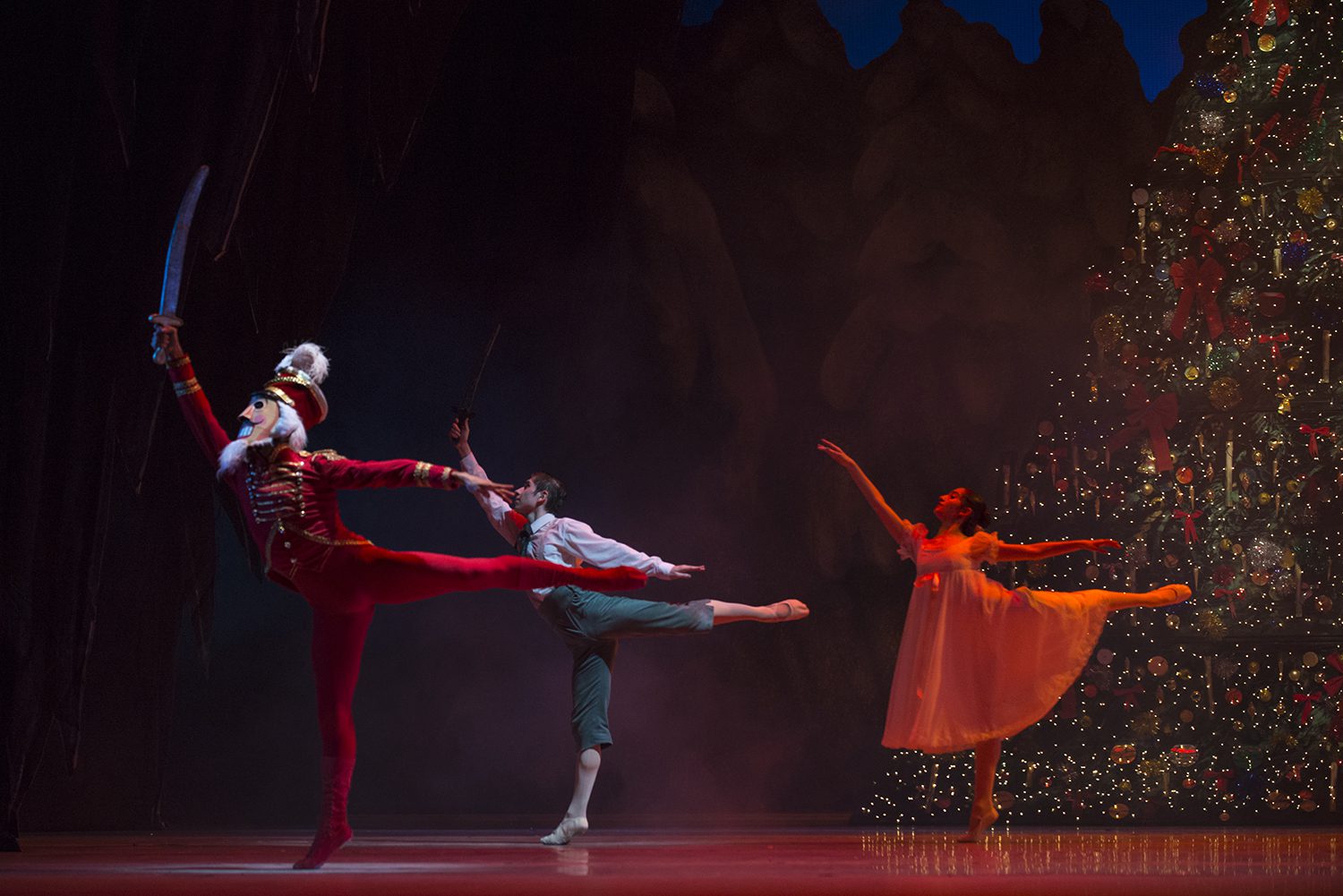 Rodrigo Guzmán bailó con su espléndida técnica un enérgico y sólido Drosselmeyer, brillando particularmente en sus pas de deux y pas de trois del segundo acto; Cascanueces fue asumido por un José Manuel Guiso en constante ascenso, no solo en aspectos técnicos, pues se transforma de muñeco a príncipe como perfecto partenaire tanto con Clara, como con las Reinas de los Confites, la Nieve o las Flores.