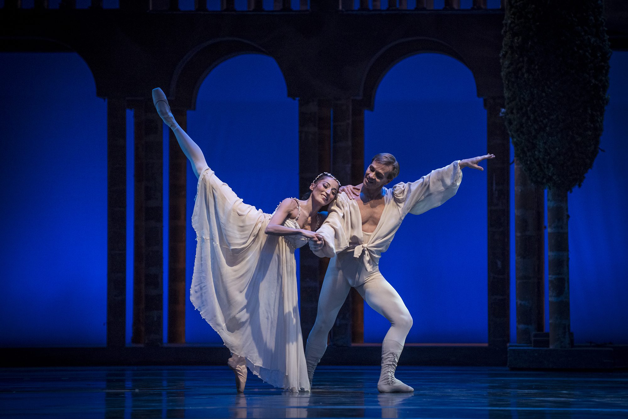 En la hermosa escenografía y vestuario de Elizabeth Dalton, que contó con la precisa iluminación de Ricardo Castro, basada en el guión de José Luis Fiorruccio, se desarrolló la inmortal historia de amor.