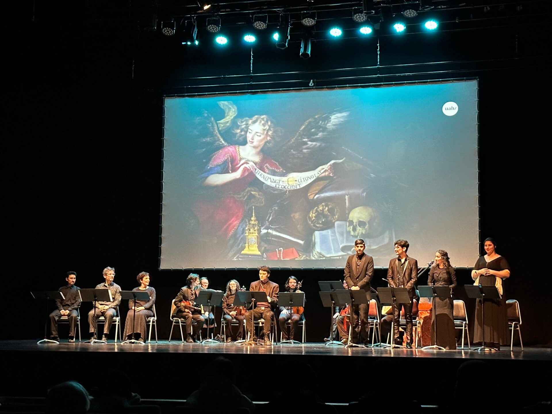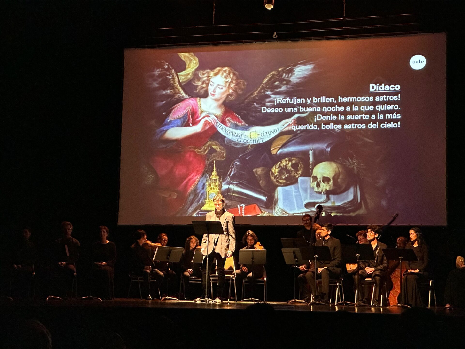 Durante la Obertura de Amor Parricida, todo el elenco. foto comunicaciones UAH