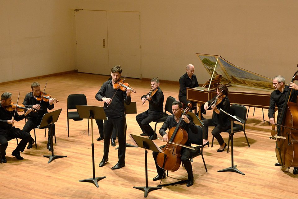 El Concerto Grosso Nº 4 del Op. 6 de Arcangelo Corelli les mostró acentuando los diálogos de grupos, como en la expresividad en el Adagio, con el sutil acompañamiento del clavecín.