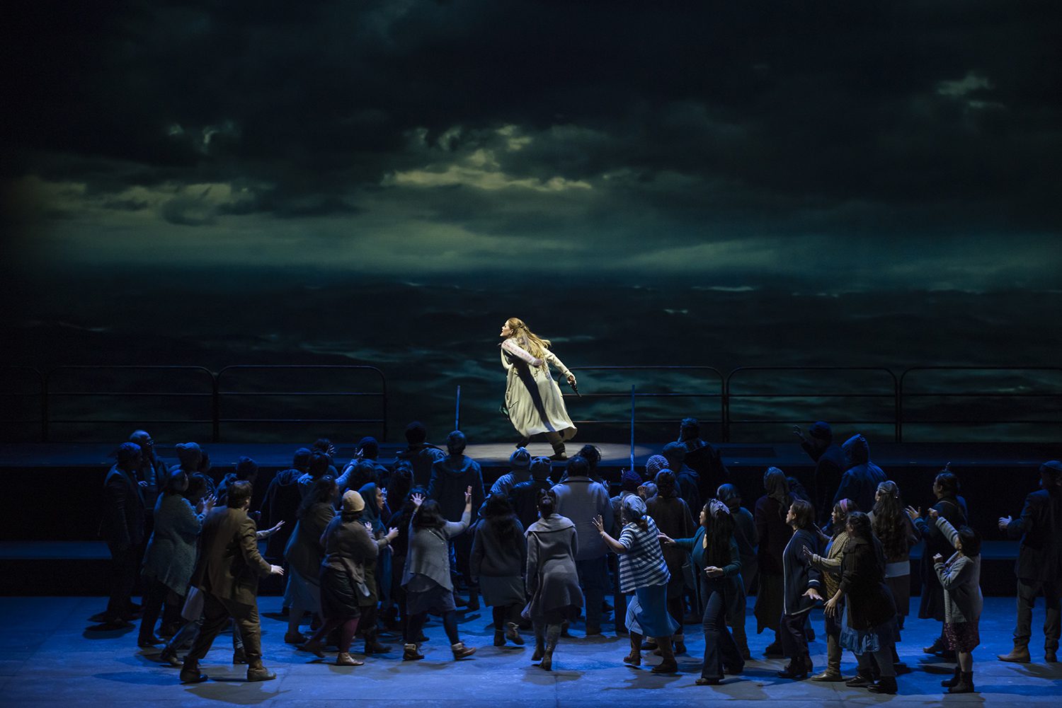 Yo sólo asistí al estreno,en general estoy de acuerdo con el crítico, siempre tan bien analizado todo el espectáculo. No me convenció el pequeño e insignificante tamaño del barco de Daland,y también podría haber sido un poco menos gigante la quilla que aparece del barco fsntasma6 y al menos con algunas luces más notorias en los ojos de buey,son cosas menores,como no me convenció tampoco la escena de Senta y el Holandés tan distantes el uno del otro y el sentándose y parandose sobre una plataforma.