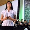 La joven soprano Marcela González cantó con bella voz y musicalidad, pero en algún momento se la vio incómoda en los tempi y algo dudosa en afinación en ciertas notas agudas.