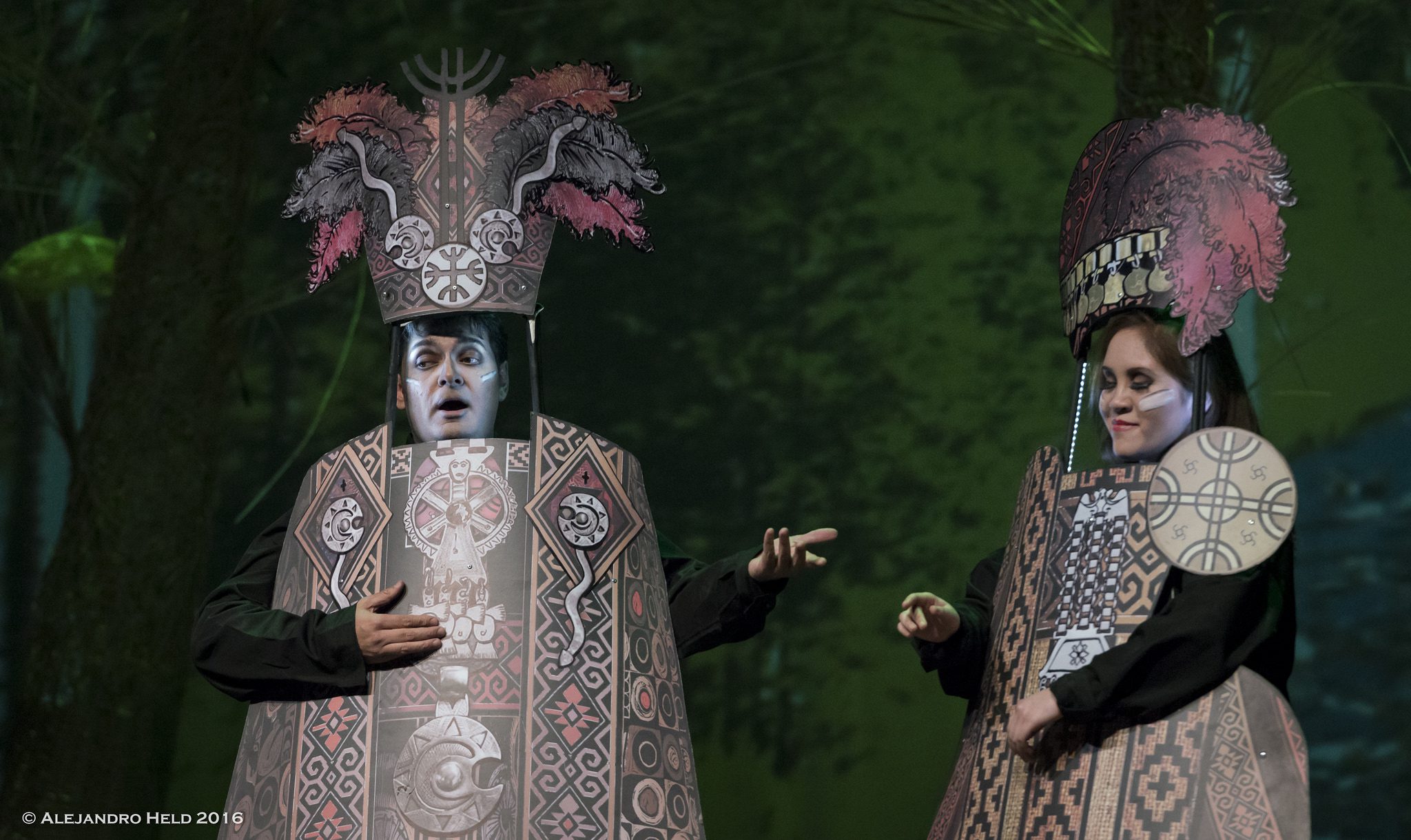 La puesta en escena, fue un trabajo conjunto de Martín López Romanelli y Marcelo Vidal, entregando importancia vital, a la Compañía Pampinak, dirigida por López Romanelli, quien trabaja con técnicas del Teatro Negro, otorgándole un ambiente mágico, que encanta, no solo a los adultos, pues los numerosos niños espectadores, siguieron fascinados las más de tres horas que dura la ópera.