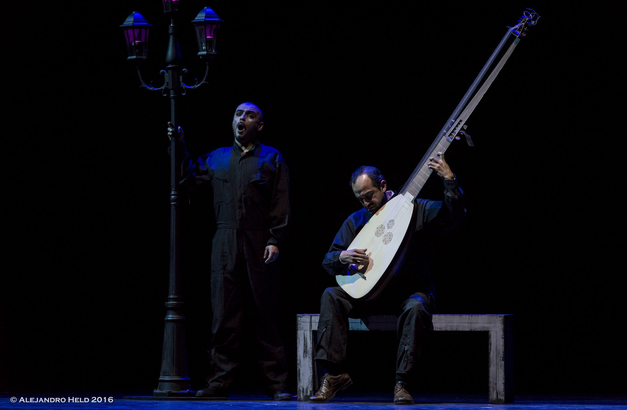 Exequiel Sánchez, ya actúa como un consagrado, se maneja con soltura en el estilo, siendo impecable en lo vocal, además de muy buen actor, perfiló muy bien a sus cuatro personajes; muy sensible fue su aria, acompañado en teorba por Marcelo Vidal, ambos en el escenario.