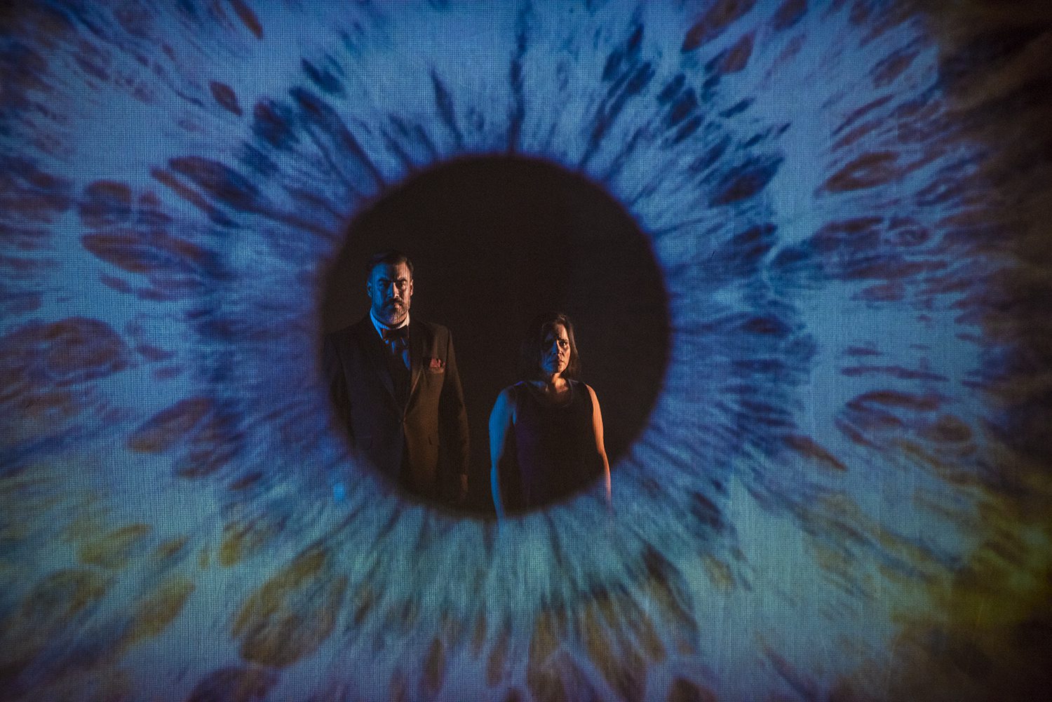 Javier Weibel y Evelyn Ramírez en el iris del ojo en la última canción. foto Paricio Melo