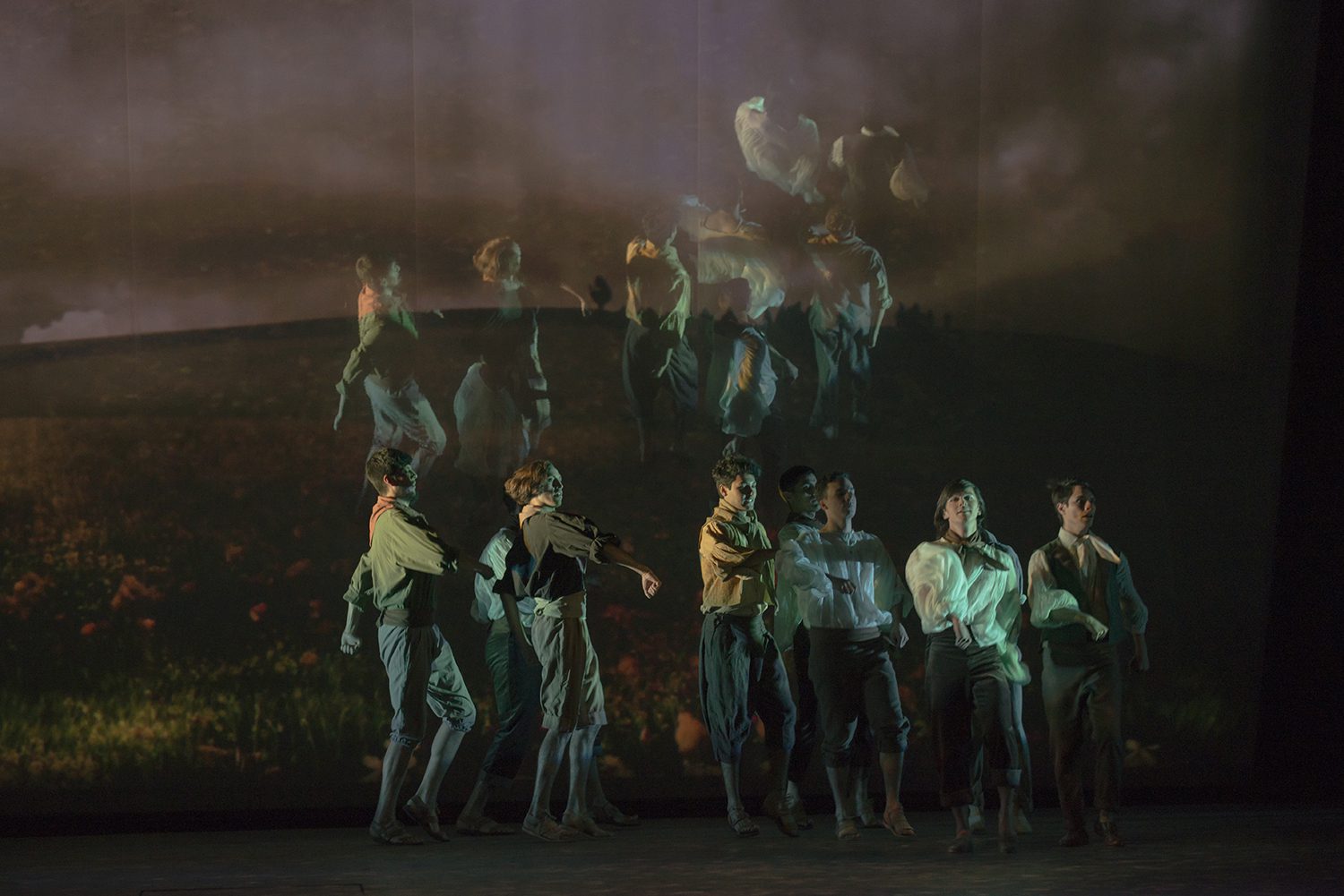 Las coreografías de José Vidal elementales y al parecer incentivando la improvisación, algo que produjo momentos dudosos particularmente en la danza de los silfos, y en el exagerado desorden del pandemónium, en contrario en la primera escena encontramos muy bien resueltas las escenas de la boda campesina y posteriormente la alegoría de los jóvenes que se enrolan para ir a la guerra y morir en ella.
