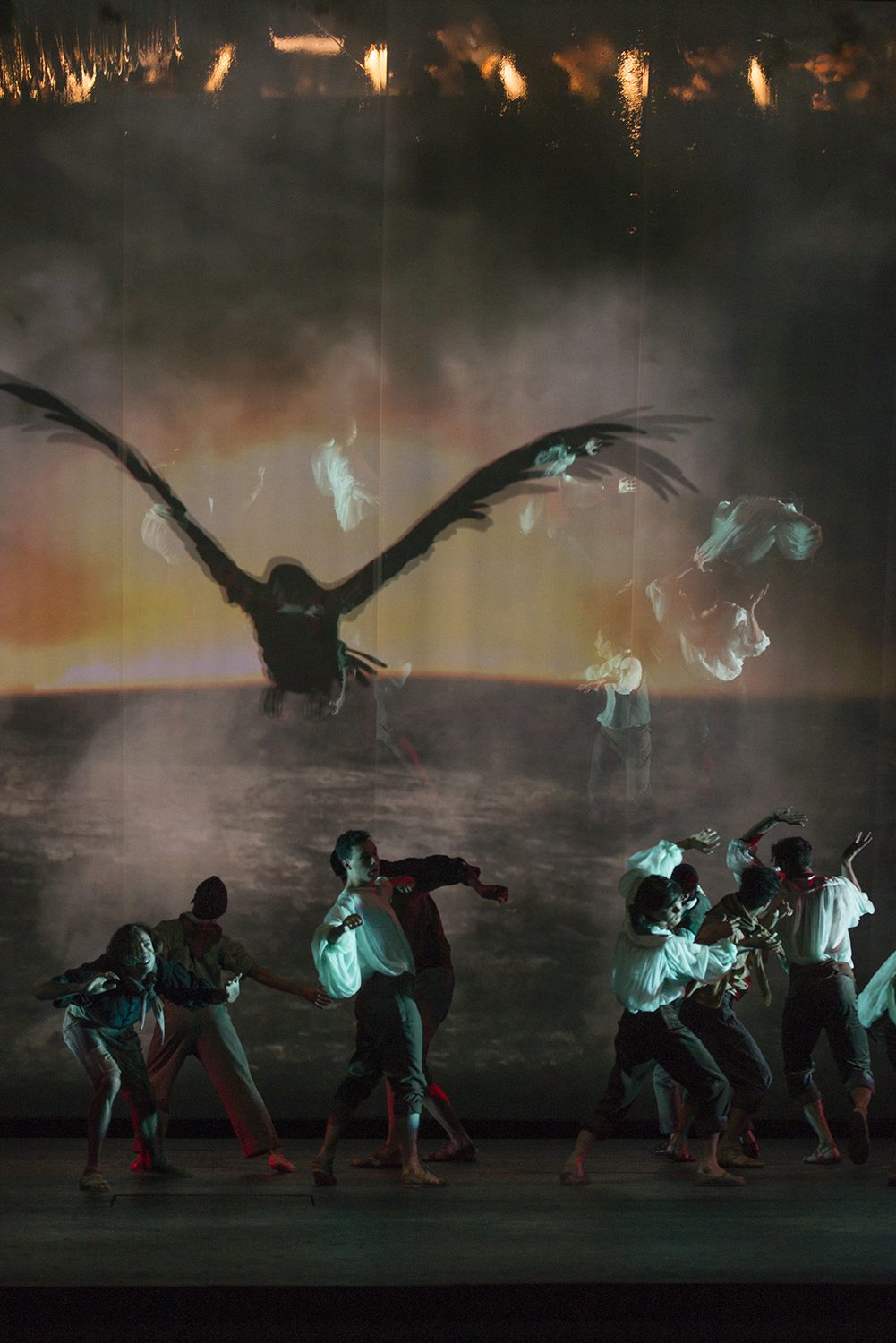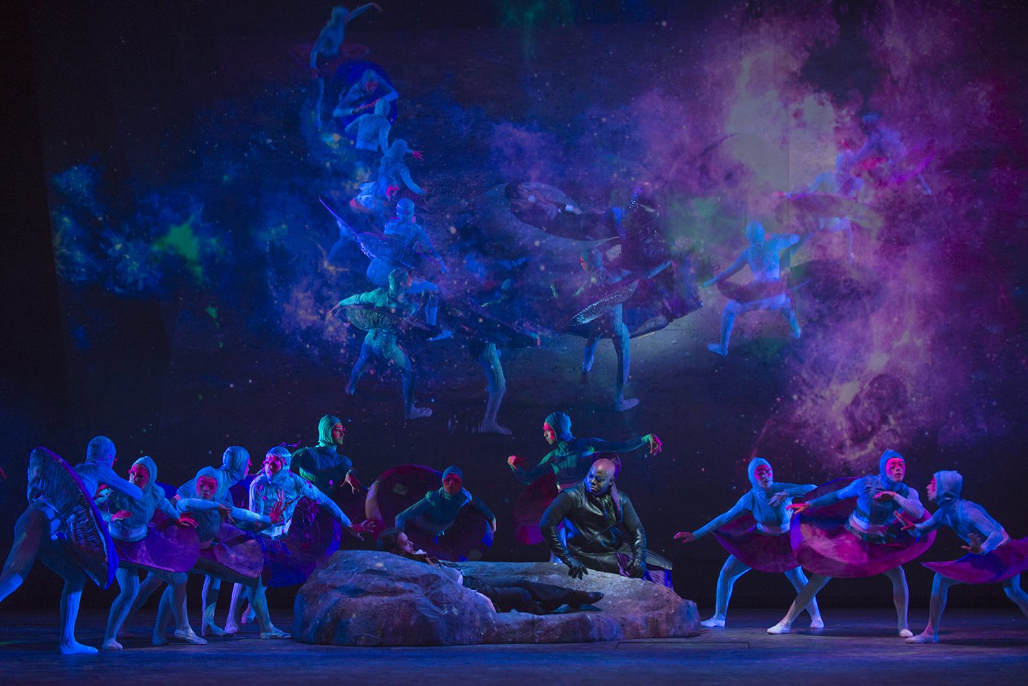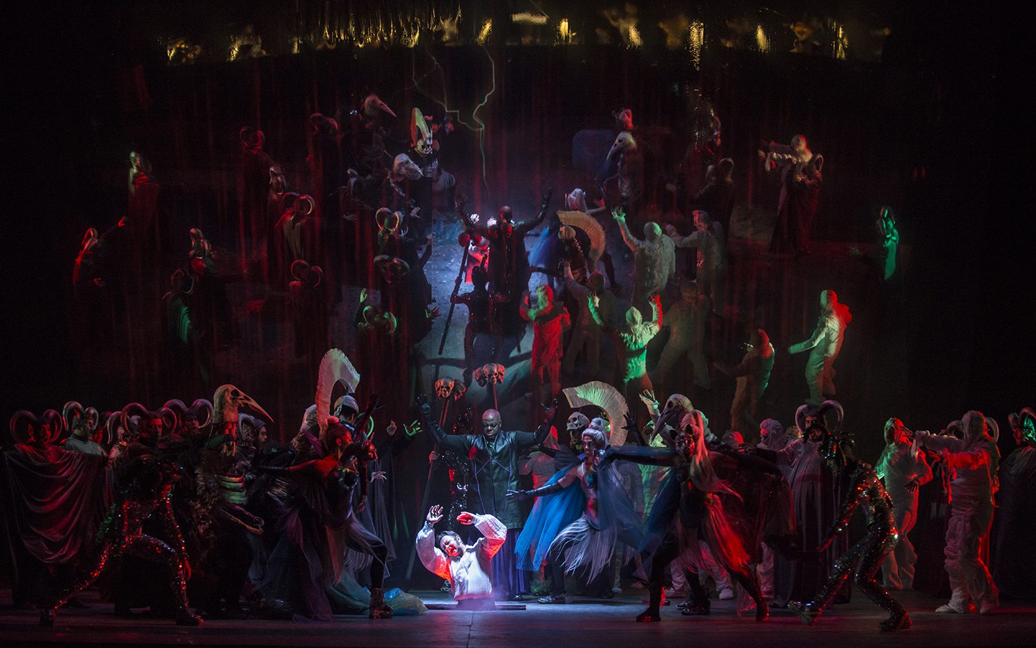 Ramón López fue el encargado de liderar el desafío de la puesta en escena, asumiendo la dirección de cantantes, coro, figurantes, la escenografía y la iluminación, partiendo de un esquema escenográfico minimalista que consultó un gran espejo-pantalla inclinado al fondo del escenario, que permite la duplicación desde otra perspectiva de los movimientos de los personajes, y como esas imágenes se complementan con proyecciones, el efecto logrado en muchas ocasiones fue de extraordinaria belleza.