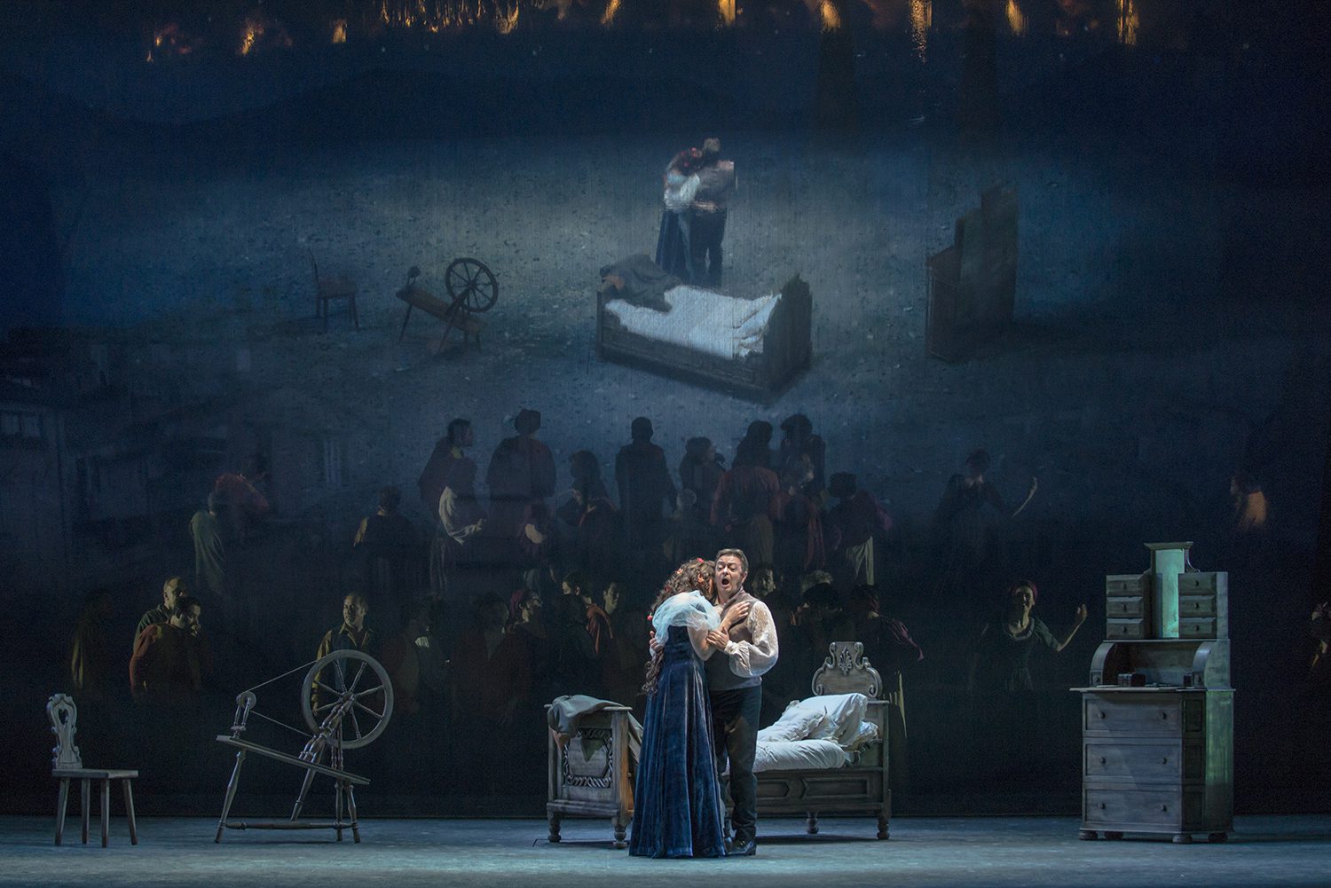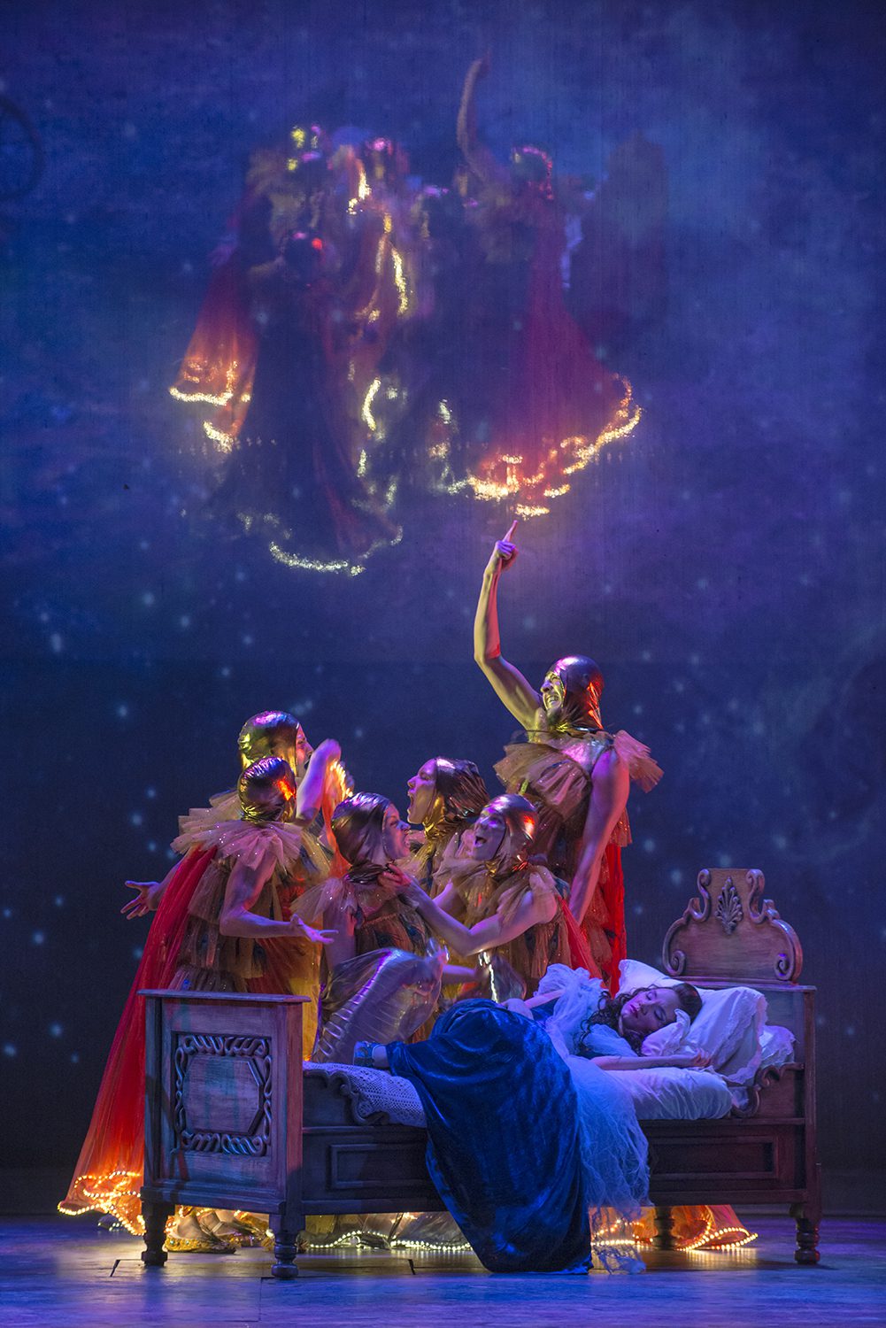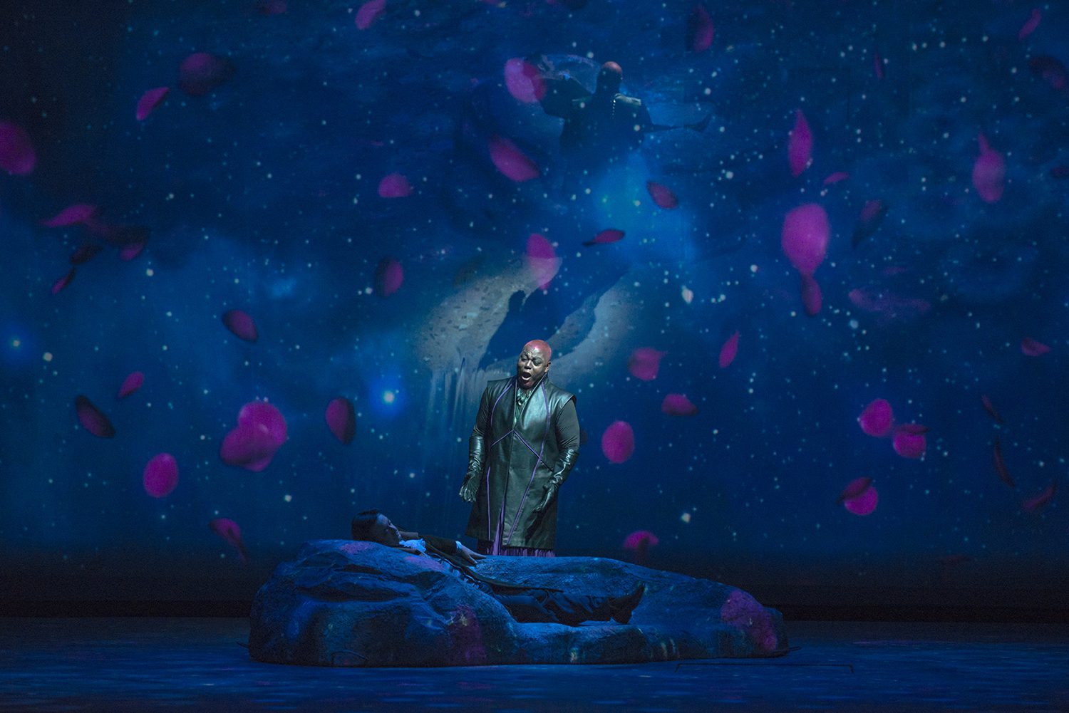 Ramón López fue el encargado de liderar el desafío de la puesta en escena, asumiendo la dirección de cantantes, coro, figurantes, la escenografía y la iluminación, partiendo de un esquema escenográfico minimalista que consultó un gran espejo-pantalla inclinado al fondo del escenario, que permite la duplicación desde otra perspectiva de los movimientos de los personajes, y como esas imágenes se complementan con proyecciones, el efecto logrado en muchas ocasiones fue de extraordinaria belleza.