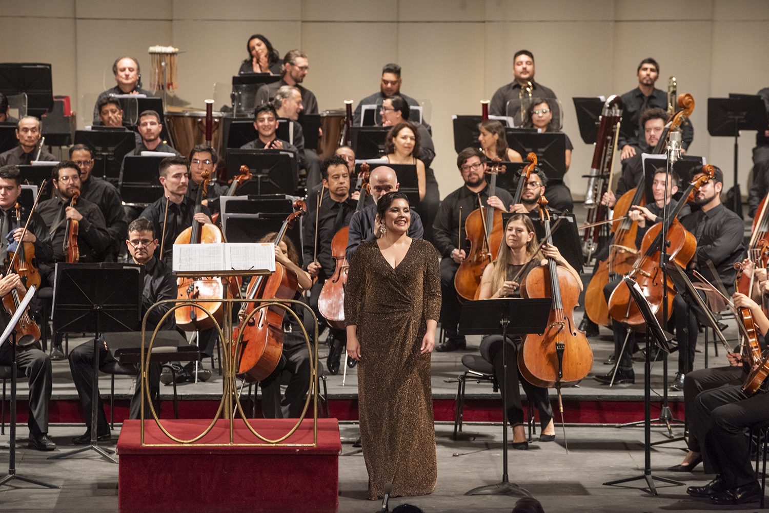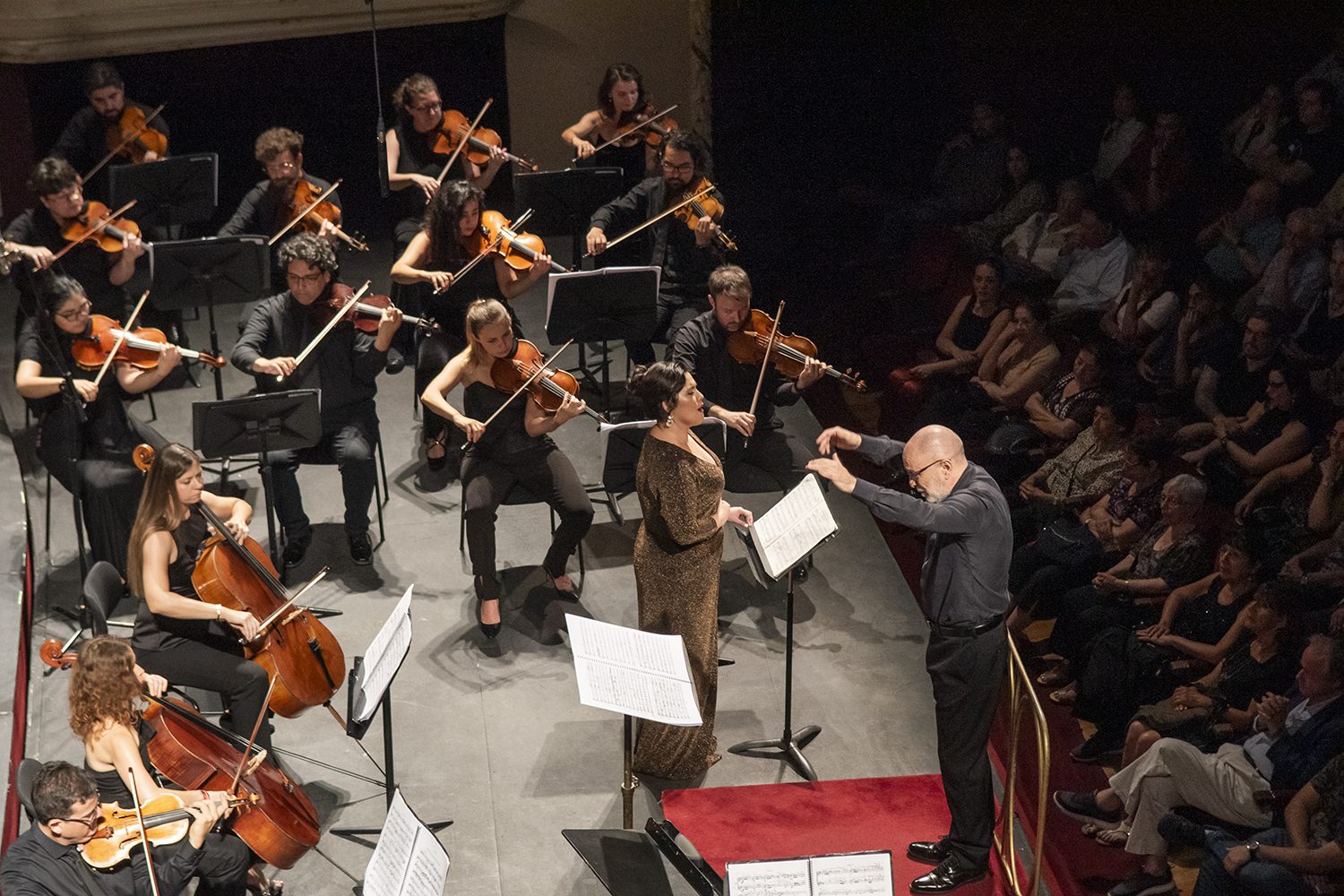 Yaritza Véliz, Roberto Rizzi Brignoli y la Filarmónica interpretando Strauss. foto Patricio Melo