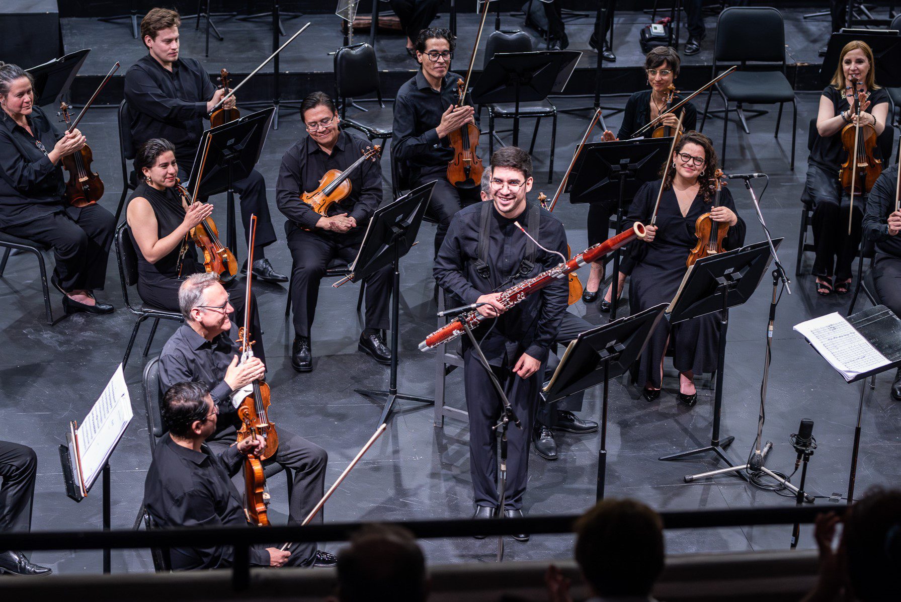 - Ya es una tradición que en este concierto sea solista el ganador de un concurso interno, interpretando alguna obra para su instrumento el que toca junto a la Sinfónica, este año resultó triunfador el fagotista Efraín Vidal quien fuera alumno de José Molina antes de perfeccionarse en el extranjero, el que también es fagotista de la orquesta, Vidal que ahora es contrafagot del conjunto, fue el interprete del hermoso y complejo Concierto para fagot y orquesta de Carl María von Weber, obra en la que su autor explota al máximo todas las posibilidades del instrumento, obra que posee diálogos muy interesantes con la orquesta, mientras que al fagot le pide una enorme cantidad de articulaciones, resueltas en forma brillante por Vidal, quien de memoria abordó la obra.
