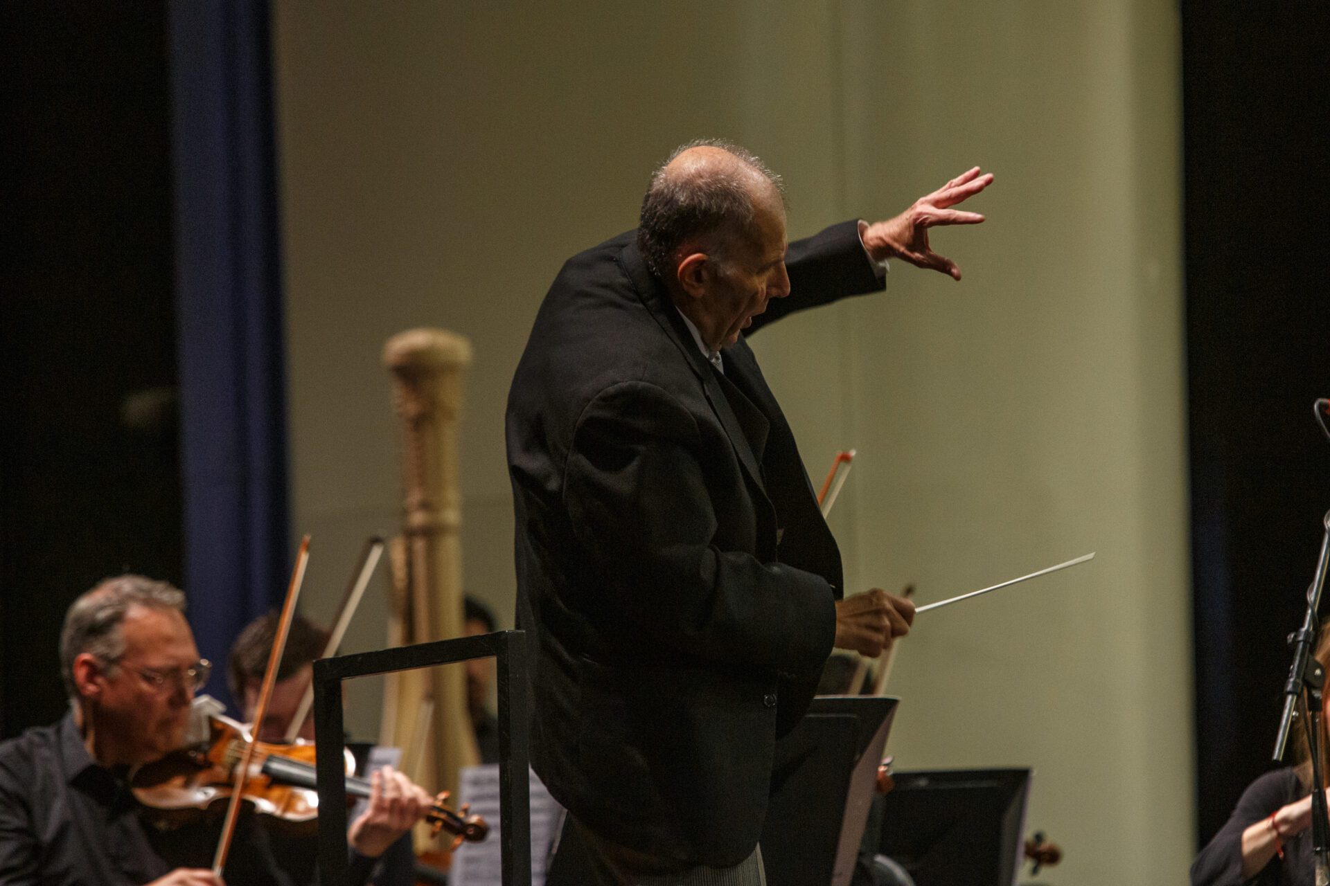 El director Rodolfo Saglimbeni dirigiendo la Suite de Prokofiev foto Martín Fernández
