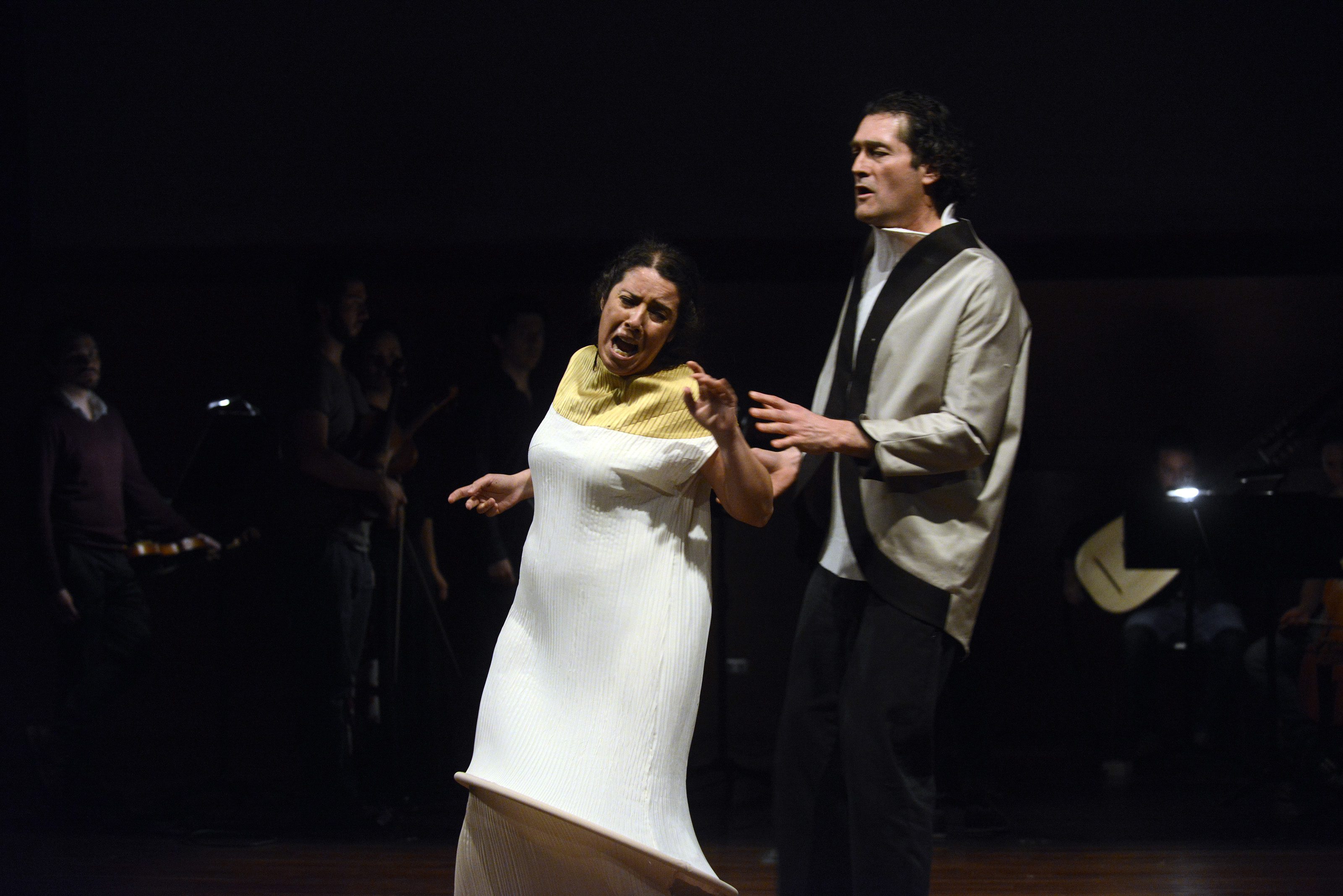 La contralto Elena Pérez junto a Pablo Oyanedel en la ópera Dido y Eneas. foto visionescriticas