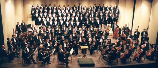Orquesta Sinfónica de Chile y el Coro Sinfónico y la Camerata Vocal de la Universidad de Chile, en otra presentación. foto visionescriticas
