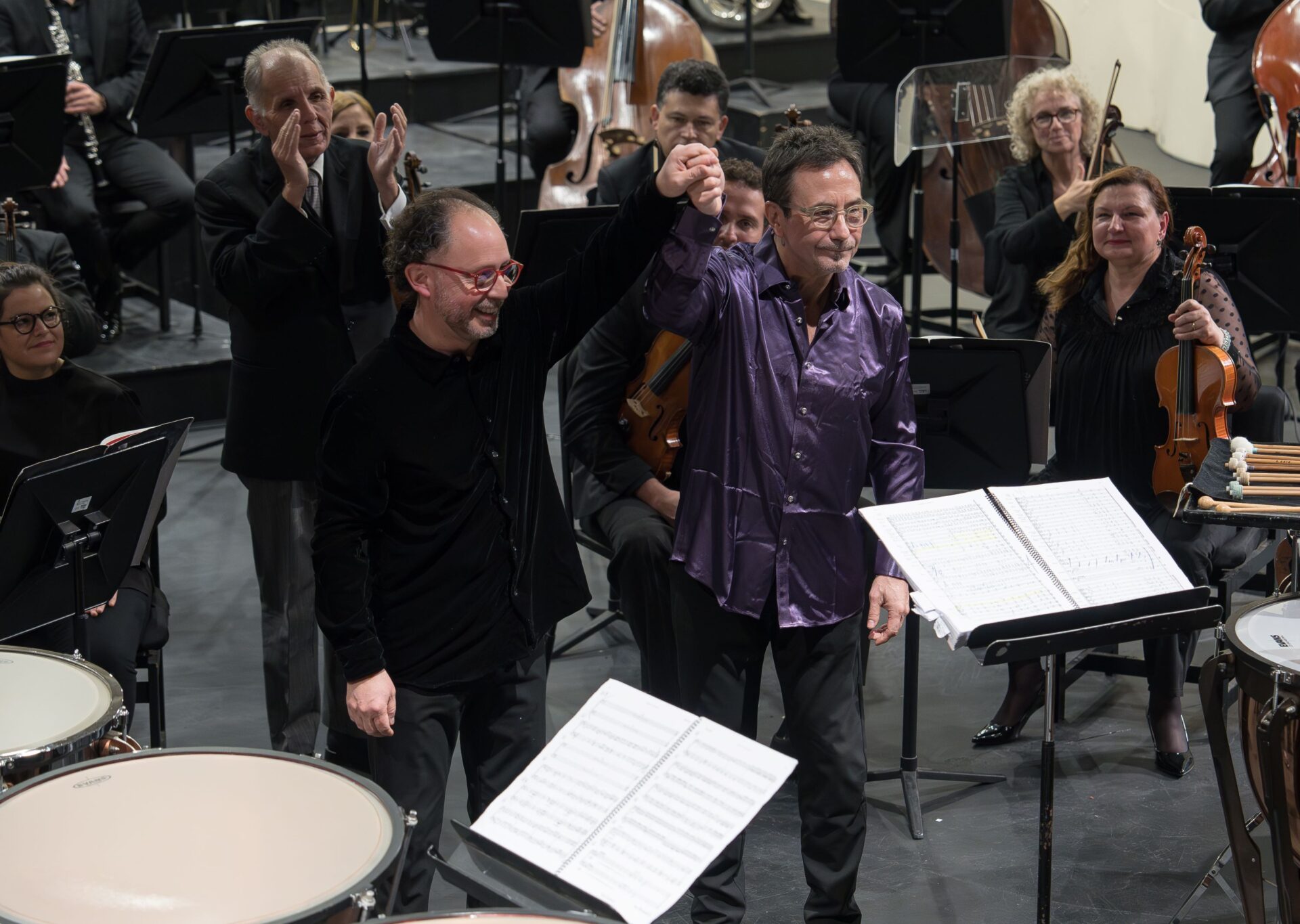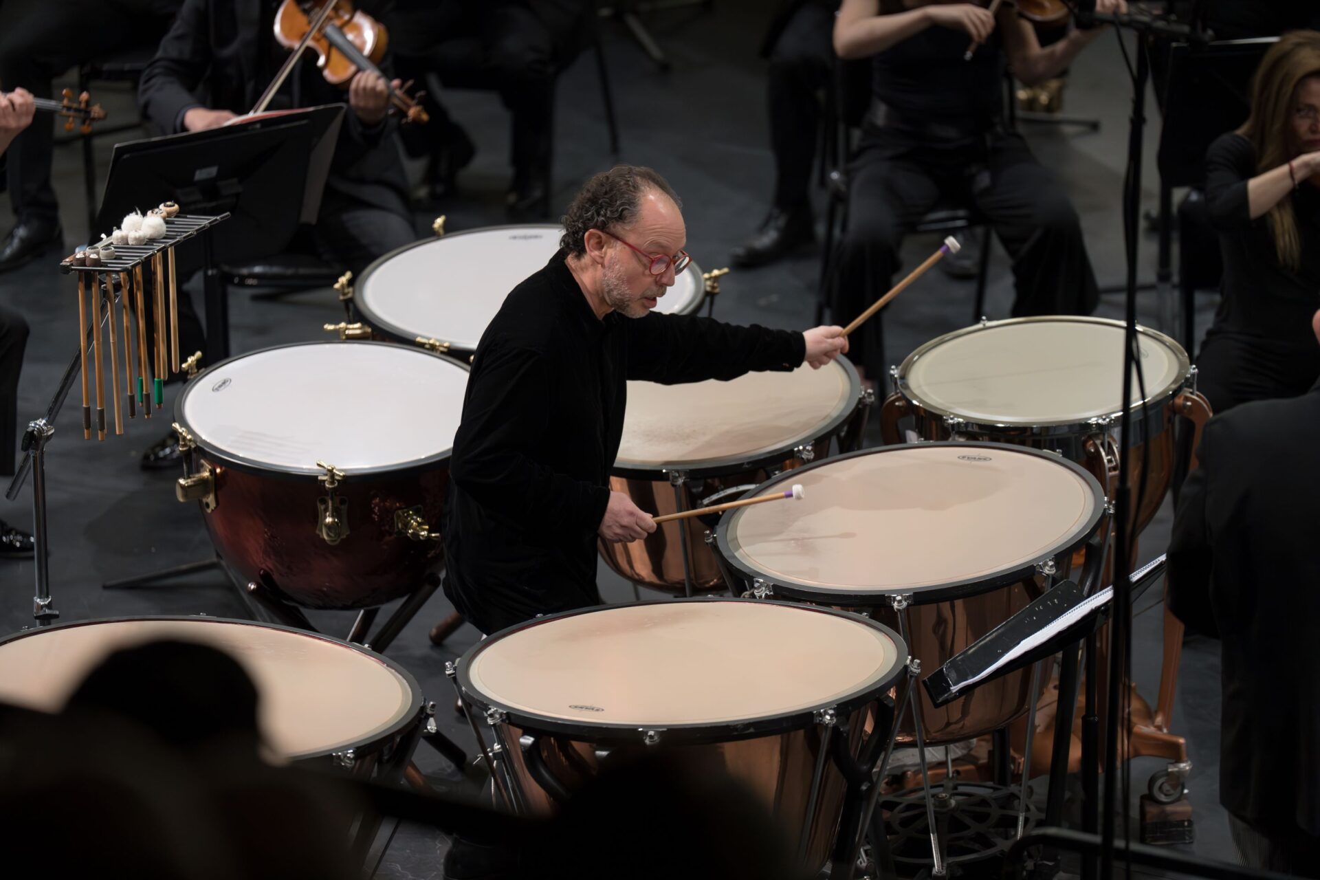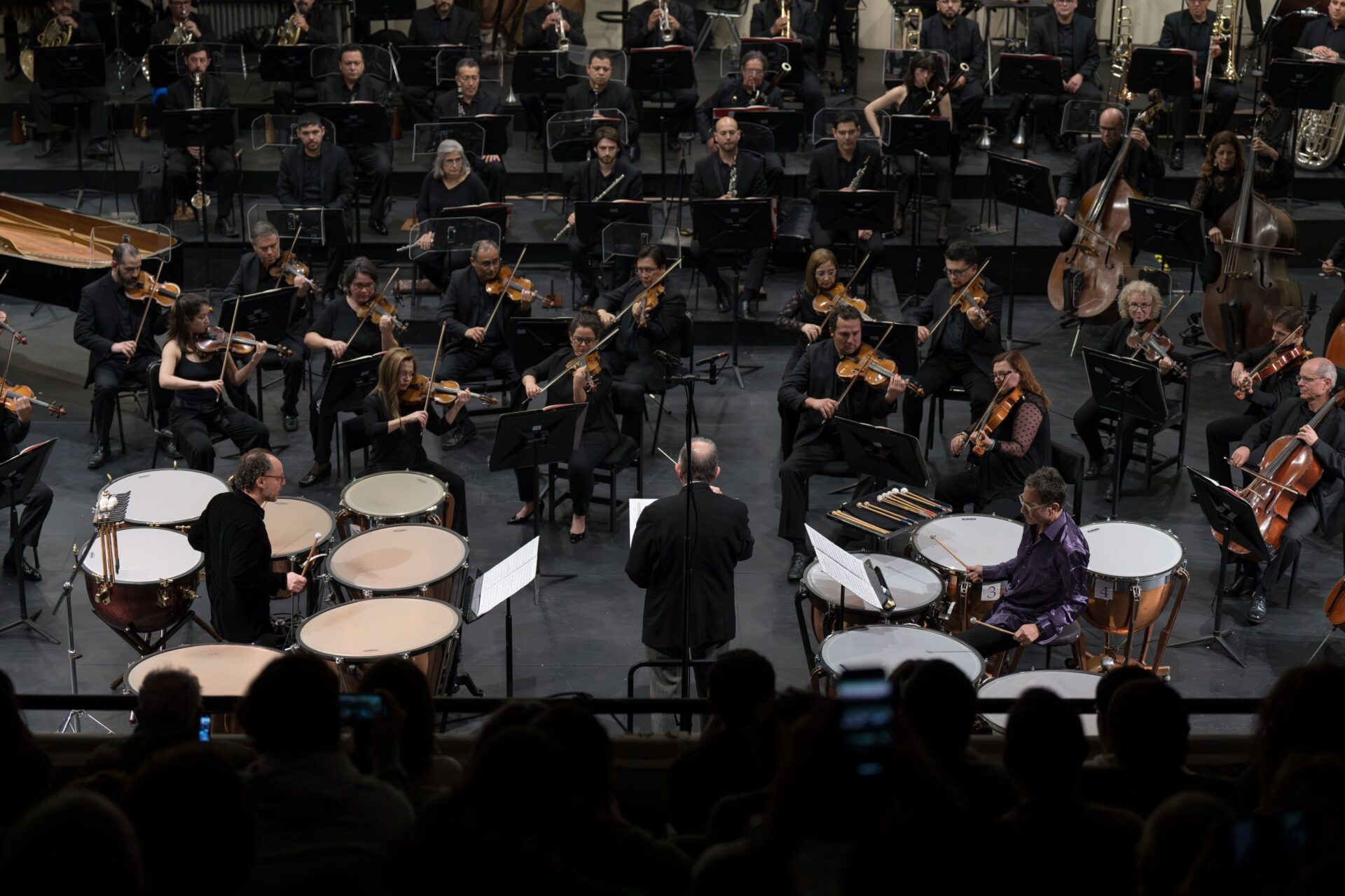 El programa concluyó con una vibrante versión del “Concierto Fantasía para dos Timbalistas y Orquesta» del estadounidense Philip Glass, con Juan Coderch y Gerardo Salazar como solistas.