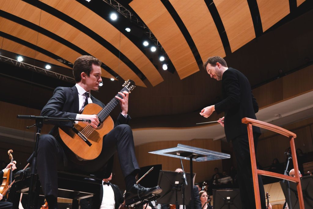 El solista en guitarra Emmanuel Sowicz y el director Andrew Gourley. en Castelnuovo Tedesco. foto ceac