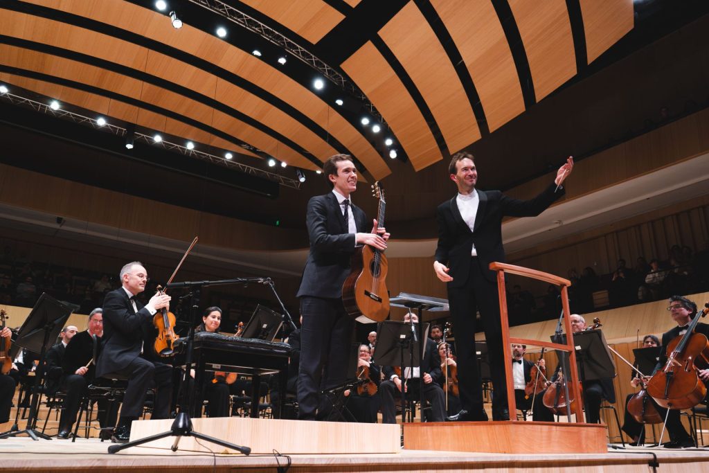 Emmanuel Sowicz y Andrew Gourley saludando al finalizar la obra de Castelnuovo Tedesco. foto caec