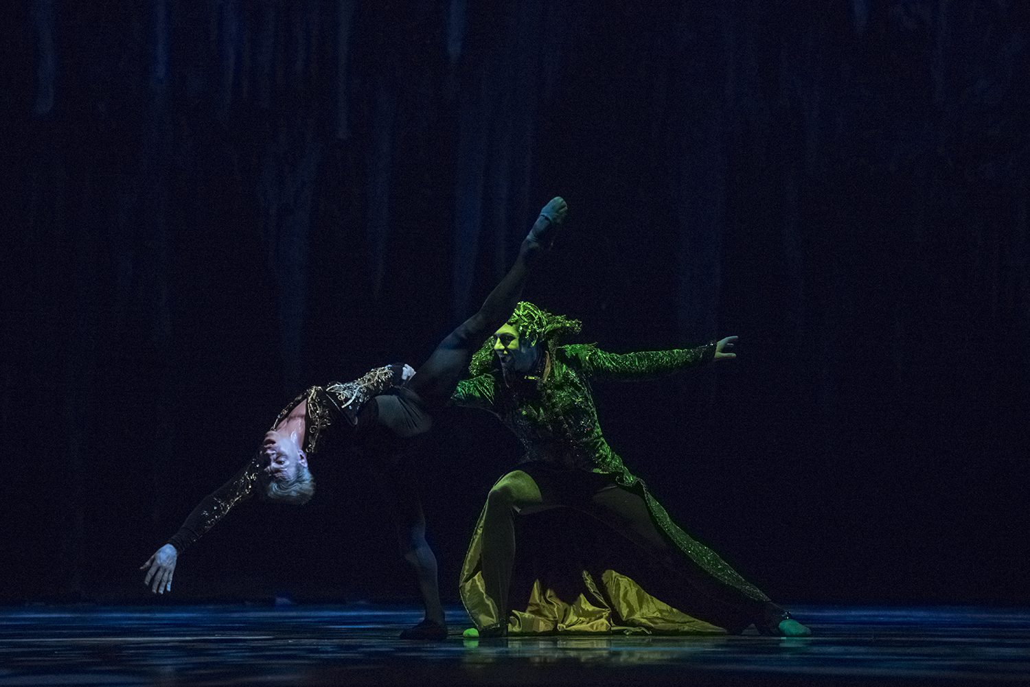 Germán Esquibel, se convirtió en Rothbart, el Mago que mantiene presas a las damas cisne, la coreografía le otorga importancia desde el inicio cuando se le ve como figura mítica, semihumano, casi ave, casi reptil, dejando muy en claro sus poderes.