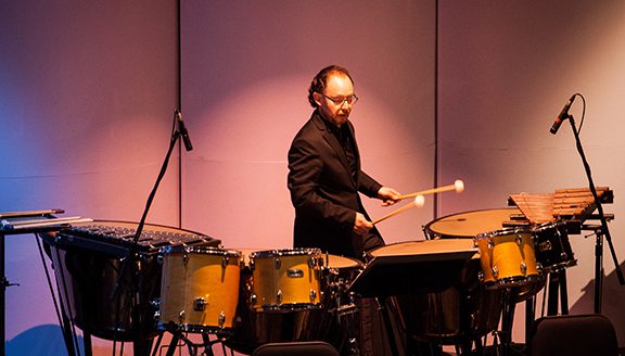 Gerardo Salazar fue el gran triunfador en la obra que continuó con el programa, se trató del Concierto para Timbal y Orquesta del saxofonista y compositor estadounidense Russel Peterson, autor que no tiene problema alguno en citar casi textualmente a otros compositores en cada uno de los tres movimientos que posee.