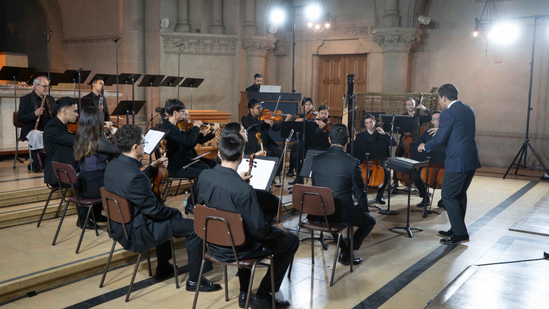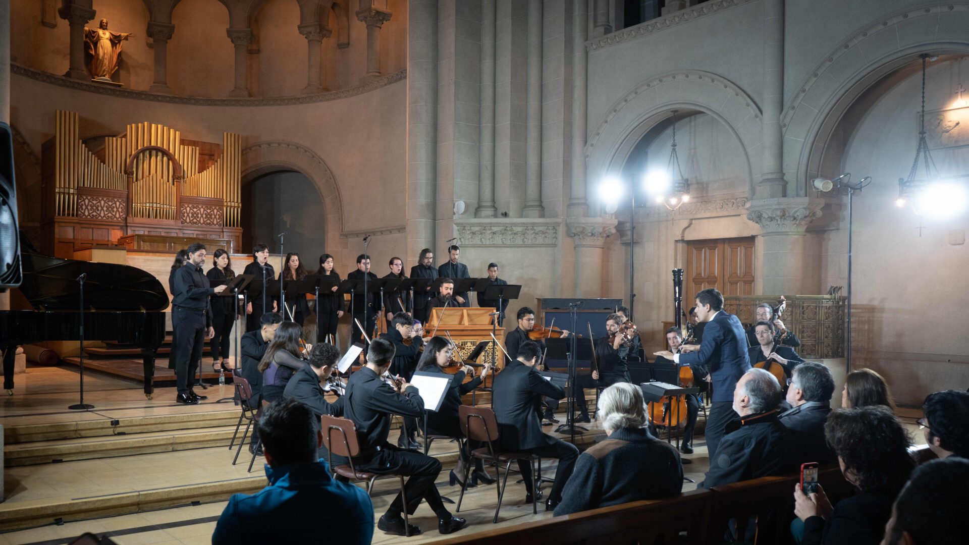La Orquesta de Cámara, Patricio Sabaté y el Coro interpretando la Misa. foto IMUC