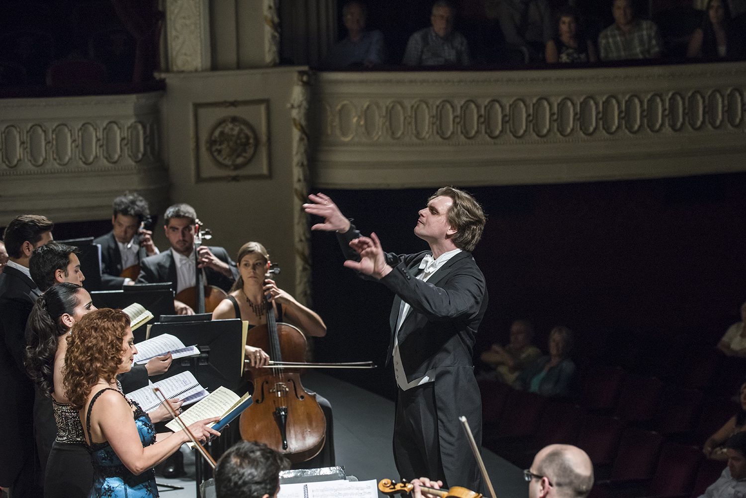 Konstantin Chudovsky dirigiendo a solistas, orquesta y coro en Las Vísperas Solemnes de Confesor. foto Patricio Melo