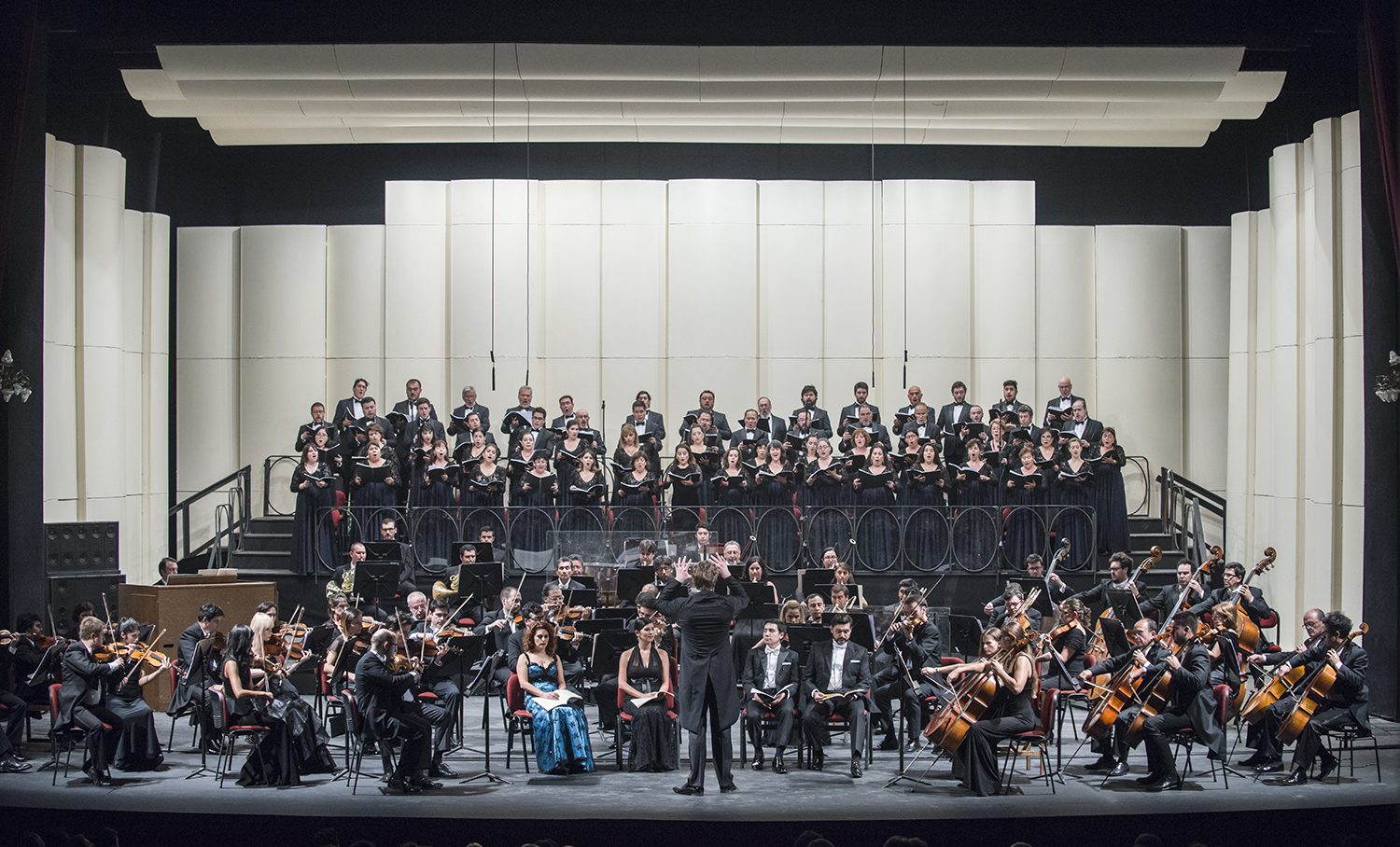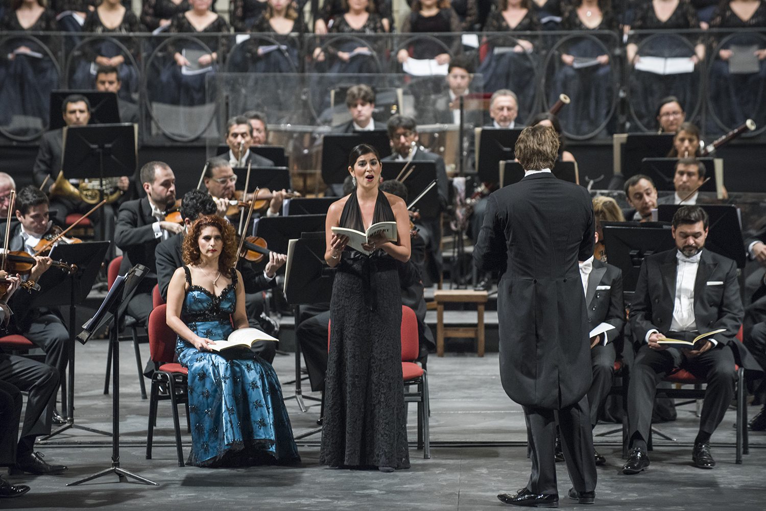 La Orquesta Filarmónica de Santiago, los solistas Patricia Cifuentes, Marcela González, Francisco Huerta y Patricio Sabaté junto al Coro del Teatro Municipal todos dirigidos por Konstantin Chudovsky. foto Patricio Melo