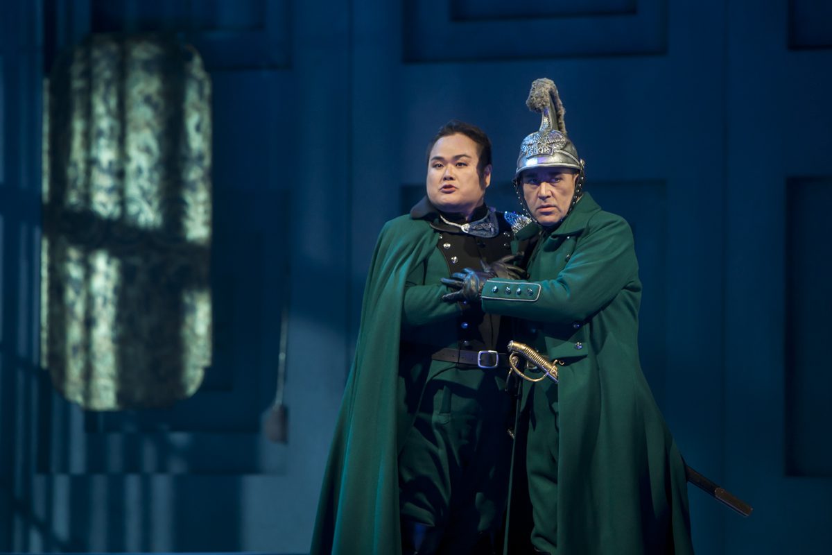 El sacerdote Oroveso, padre de Norma, encontró en Ievgen Orlov un bajo de voz irregular, con momentos de afinación confusa, pero sobre todo esquemático en actuación, no le otorgó la prestancia necesaria a su papel.