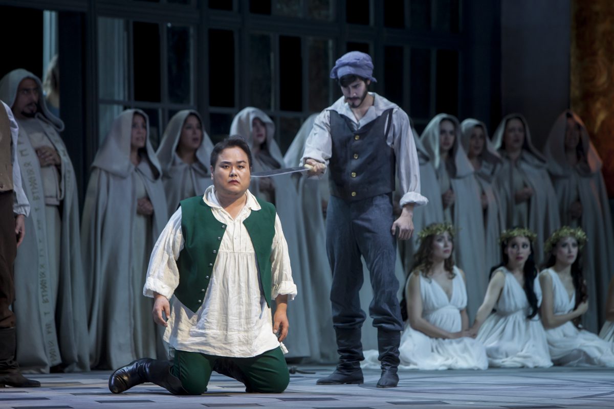 Pollione fue cantado por Sung Kyu Park, tenor de timbre agradable, gran caudal de voz, pero con inflexiones algo crudas, poco sutiles, eso sí, encontramos débil su actuación que es muy poco natural, tal vez la última escena sea su punto más destacable.