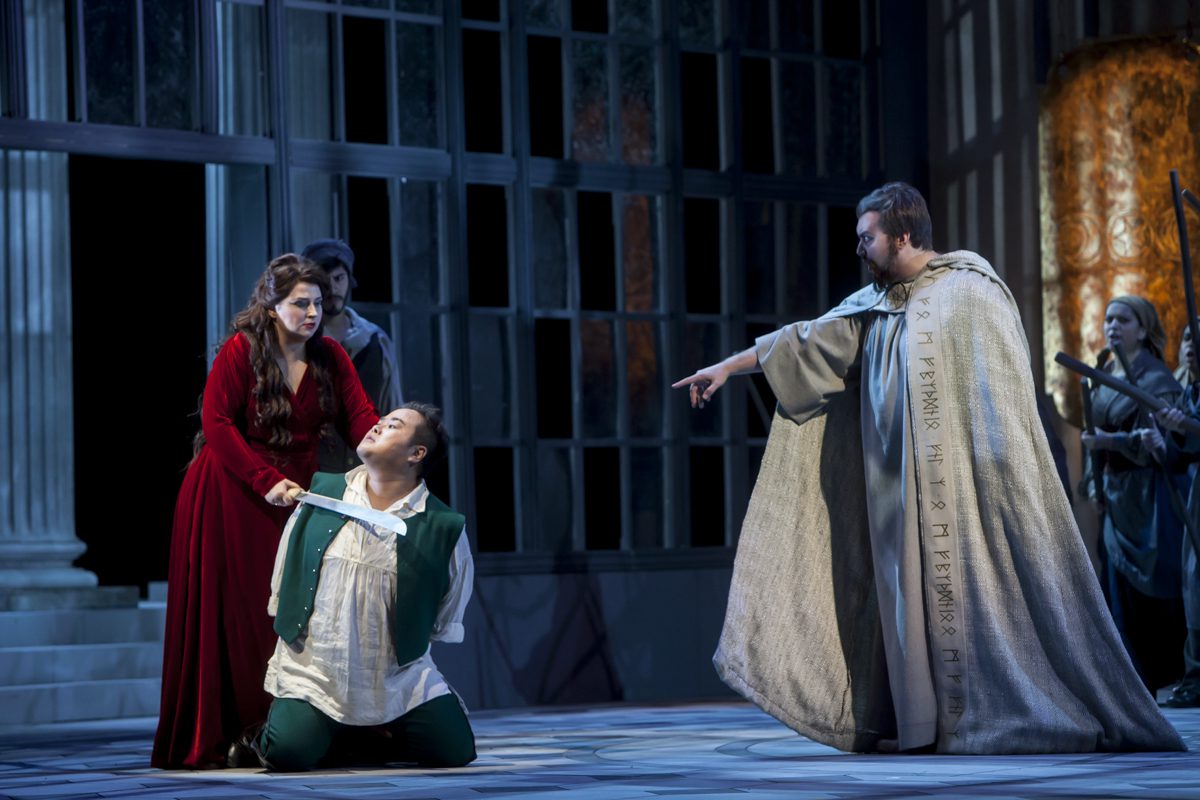 La producción encabezada por Francesca Zambello en régie, traslada la acción desde la Galia 50 años antes de Cristo, hasta el siglo XIX, algo que provocó un cierto escozor en alguna parte del público, no obstante al final la gran mayoría terminó por aceptarla seguramente debido a la gran belleza estética de la misma.