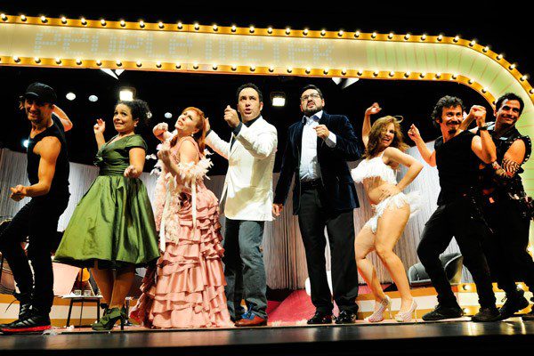 El gran comediante y cantante que es Patricio Sabaté, se mueve a sus anchas como Aníbal conductor de programa, cambia de carácter y vocalmente, según sea la secuencia, “al aire” o en la vida real; su pareja televisiva es Cristina, que canta y actúa muy bien Claudia Godoy, sospechando siempre una antigua relación de su esposo con Gloria.