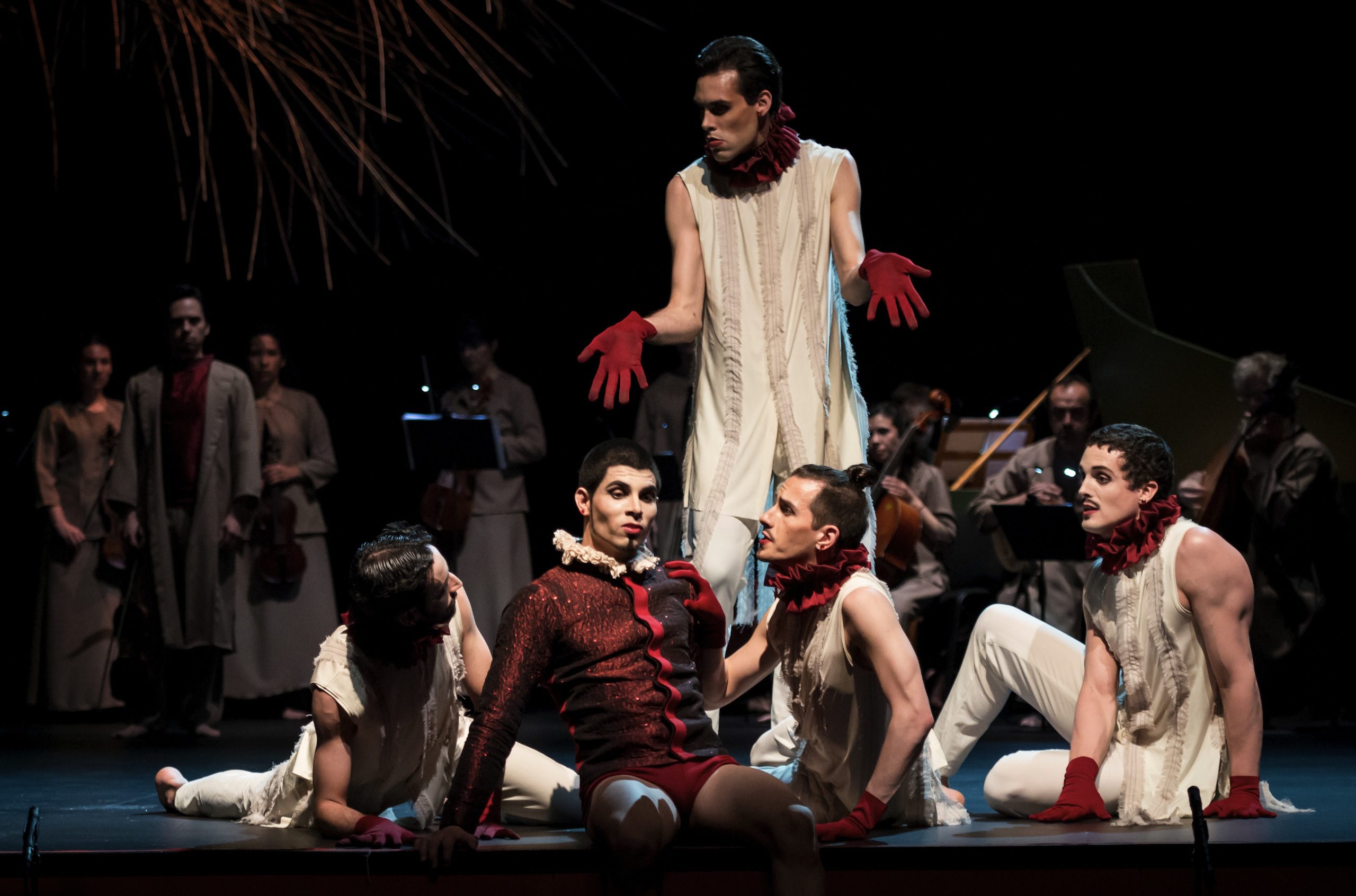Esta no es arbitraria, mira directamente al barroco, con guiños a Caravaggio, en la forma de crear imágenes, mientras que, en el bello vestuario de María Albertinazzi, se alude a otros maestros barrocos, la orquesta viste además ropajes de color neutro, fundiéndose en algunos pasajes, con el color del resto.