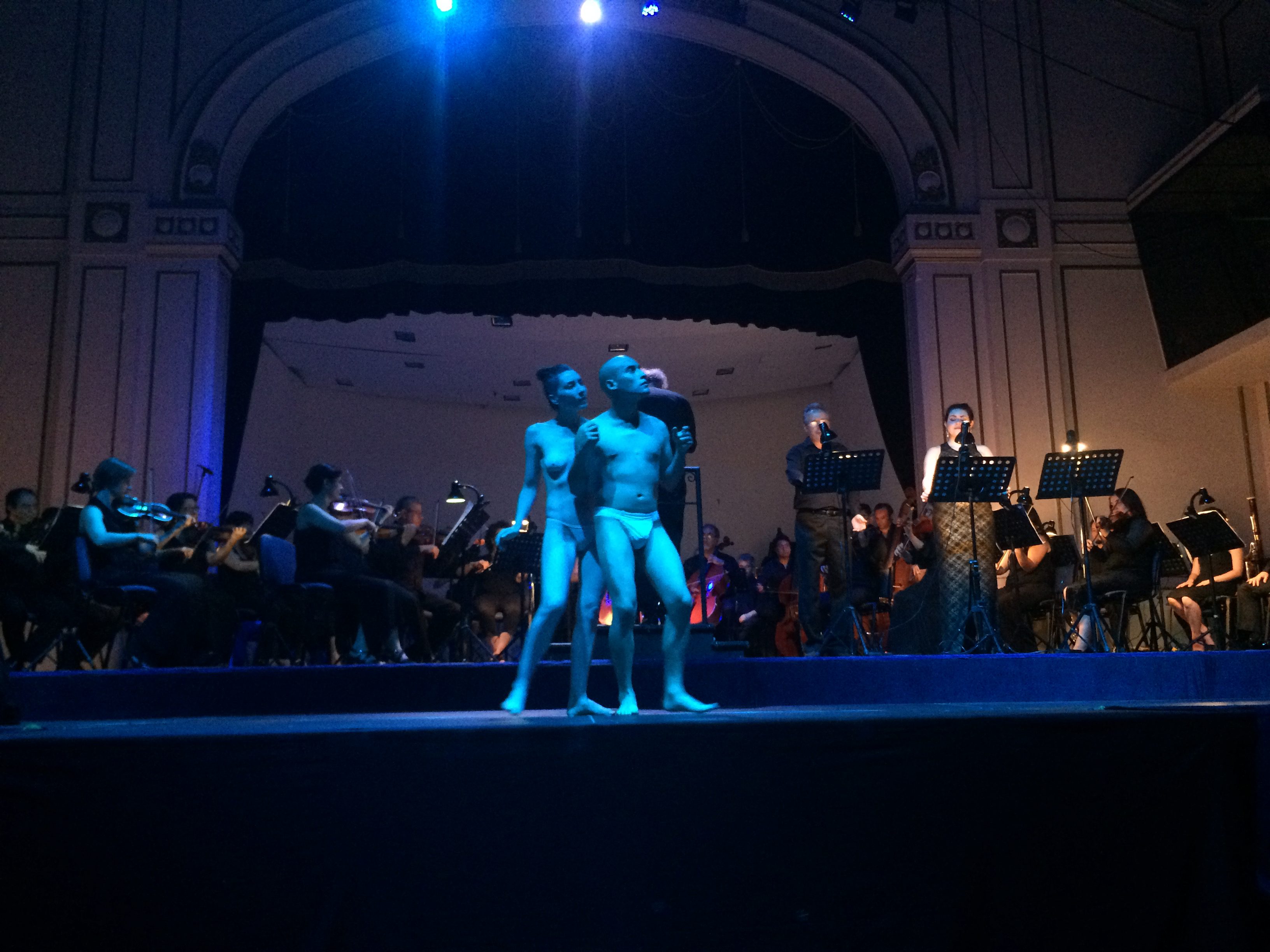 Participó además la Compañía Mimo Corpus Movens, que dirige Leopoldo Martínez, de la que se dijo haría más comprensible la historia, algo que en verdad solo en ciertos momentos fue logrado. Ellos utilizaron la desnudez propia de cuerpos pintados, y con solo tres mimos encarnaron a Orfeo, Euridice, Amor y una sola Furia, afortunadamente no se incorporó en escena el anunciado personaje “El Barquero”, mencionado en el programa, que no está en la ópera.