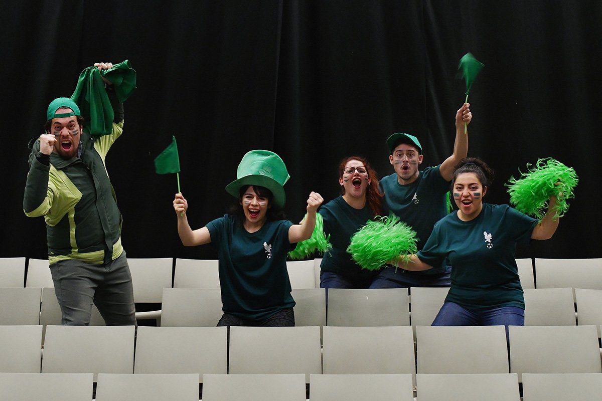 La puesta en escena es la que nos merece reparos, pues si bien a priori no rechazamos puestas arriesgadas por lo novedosas, creemos que estas deben tener una necesaria pertinencia, algo que esta oportunidad no encontramos, la lucha entre bretones y sajones llevada a un enfrentamiento futbolístico, con fanáticos, porristas -que en el futbol no existen-, incluidas “olas” entre los fanáticos, no tienen correspondencia con los textos, resultando incoherente leer los textos y ver lo que ocurría en el escenario.