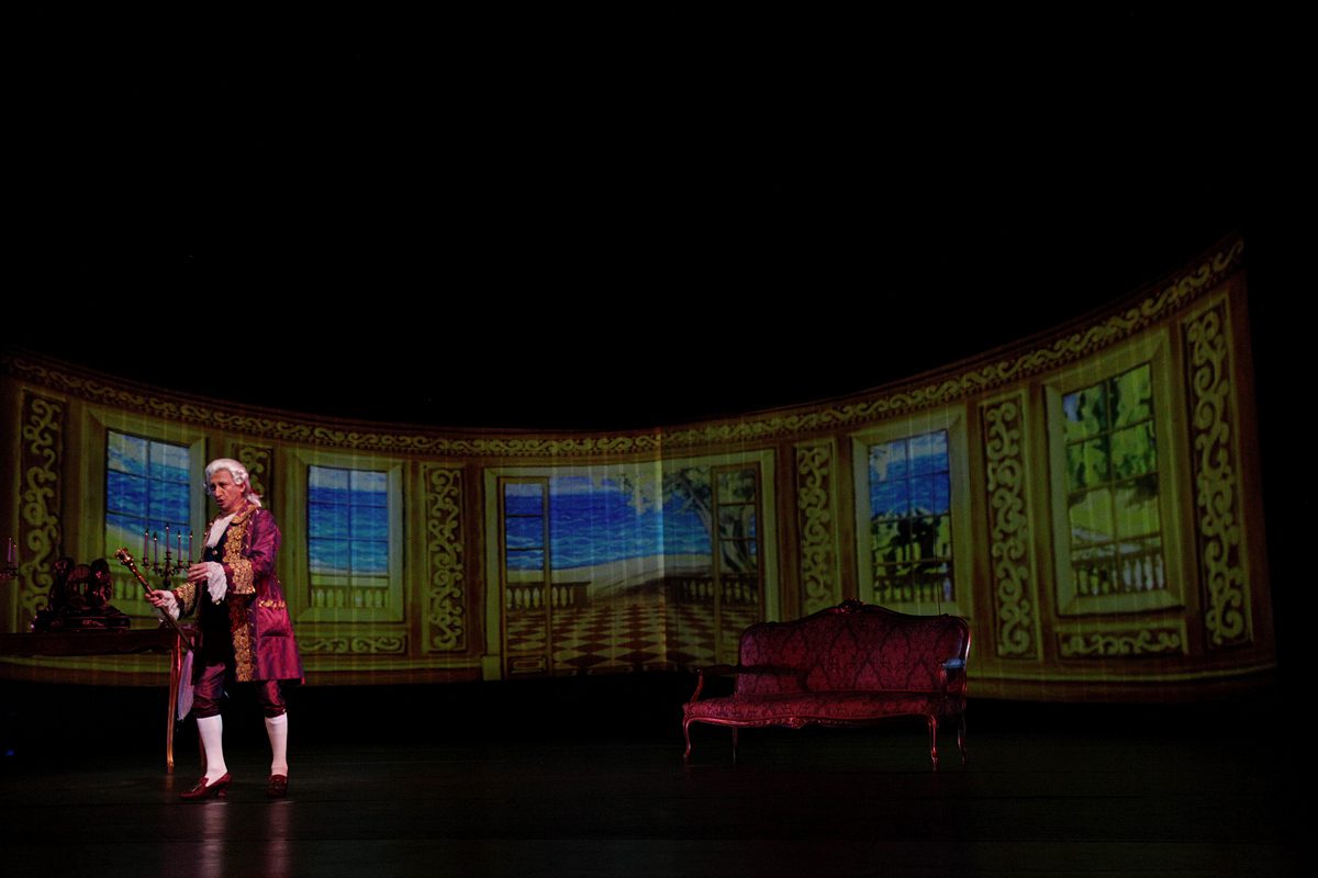 En una escenografía curva, se proyectan las imágenes, según la escena donde ocurre la acción, fundiendo algunas de los personajes, con la irrupción del mismo, a través de ella; llamando la atención especialmente: el trío (Dorabella, Alfonso y Fiordoligi) en semipenumbra, que despide al barco que lleva a los soldados a la guerra, por su poética belleza, tanto como aquellas imágenes a lo Cezanne o Van Gogh, que acompañan otras; del mismo modo fue interesante hacer de la historia algo universal y atemporal, iniciándola y finalizándola en la actualidad, incluso Despina ingresa S. XXI, para vestirse en escena de acuerdo al S. XVIII.