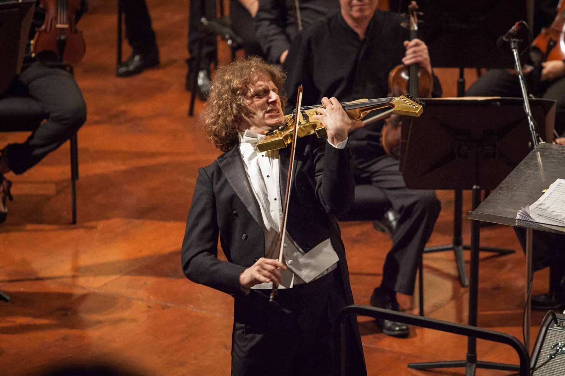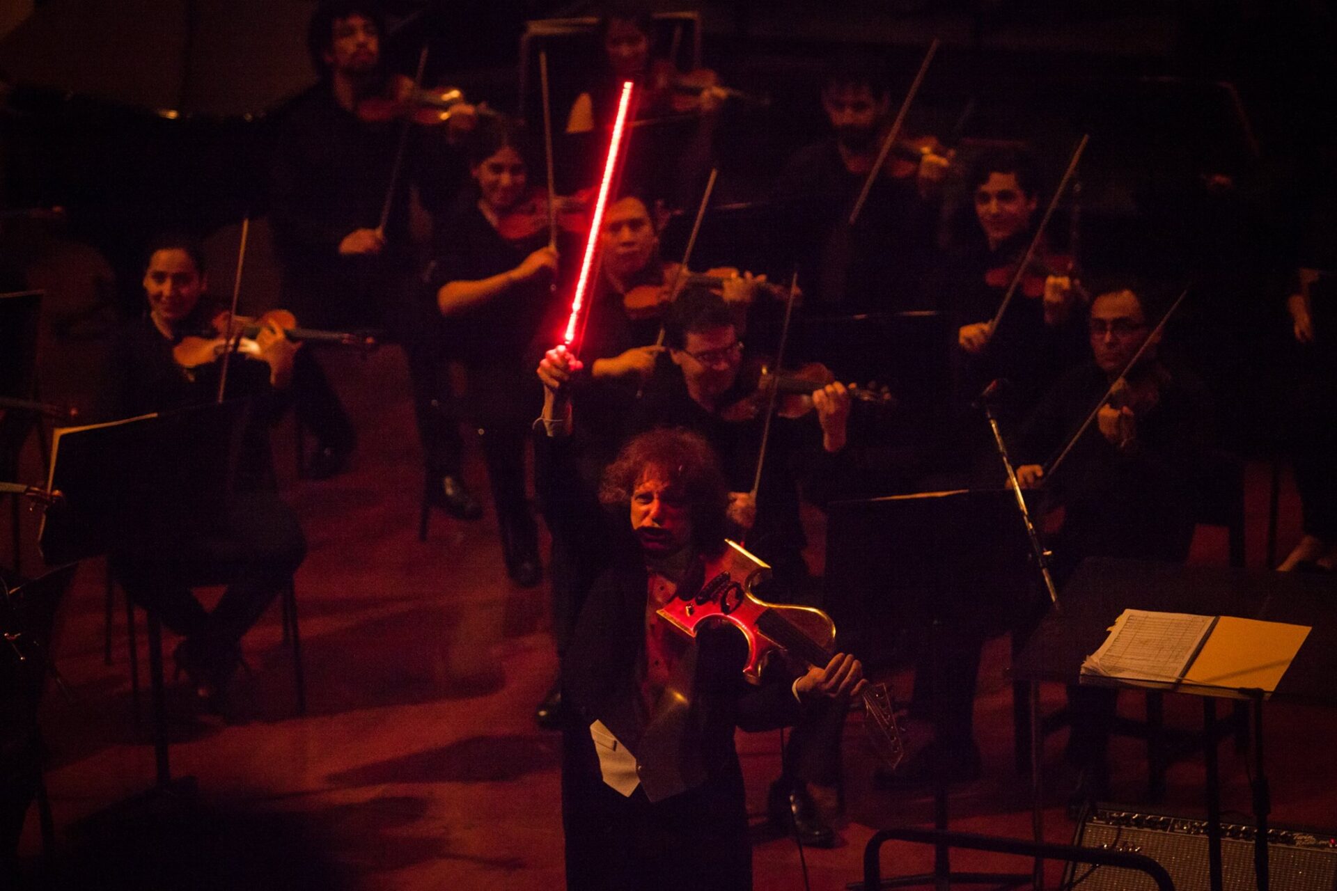 Markov con su violín eléctrico y su arco luminoso rojo. foto Josefina Pérez