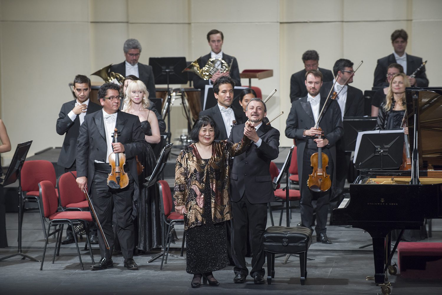Luego la pianista japonesa Akiko Ebi, interpretó uno de los conciertos más hermosos de Wolfgang Amadeus Mozart, nos referimos al Nº 23 en La mayor. K. 488, que no solo es de gran exigencia para el piano, también lo es para la orquesta; ya desde la introducción orquestal, Attilio Cremonesi mostró su experticia en Mozart, consiguiendo del conjunto exquisita claridad en articulaciones y fraseos, en medio de un estupendo balance en cuerdas y vientos.