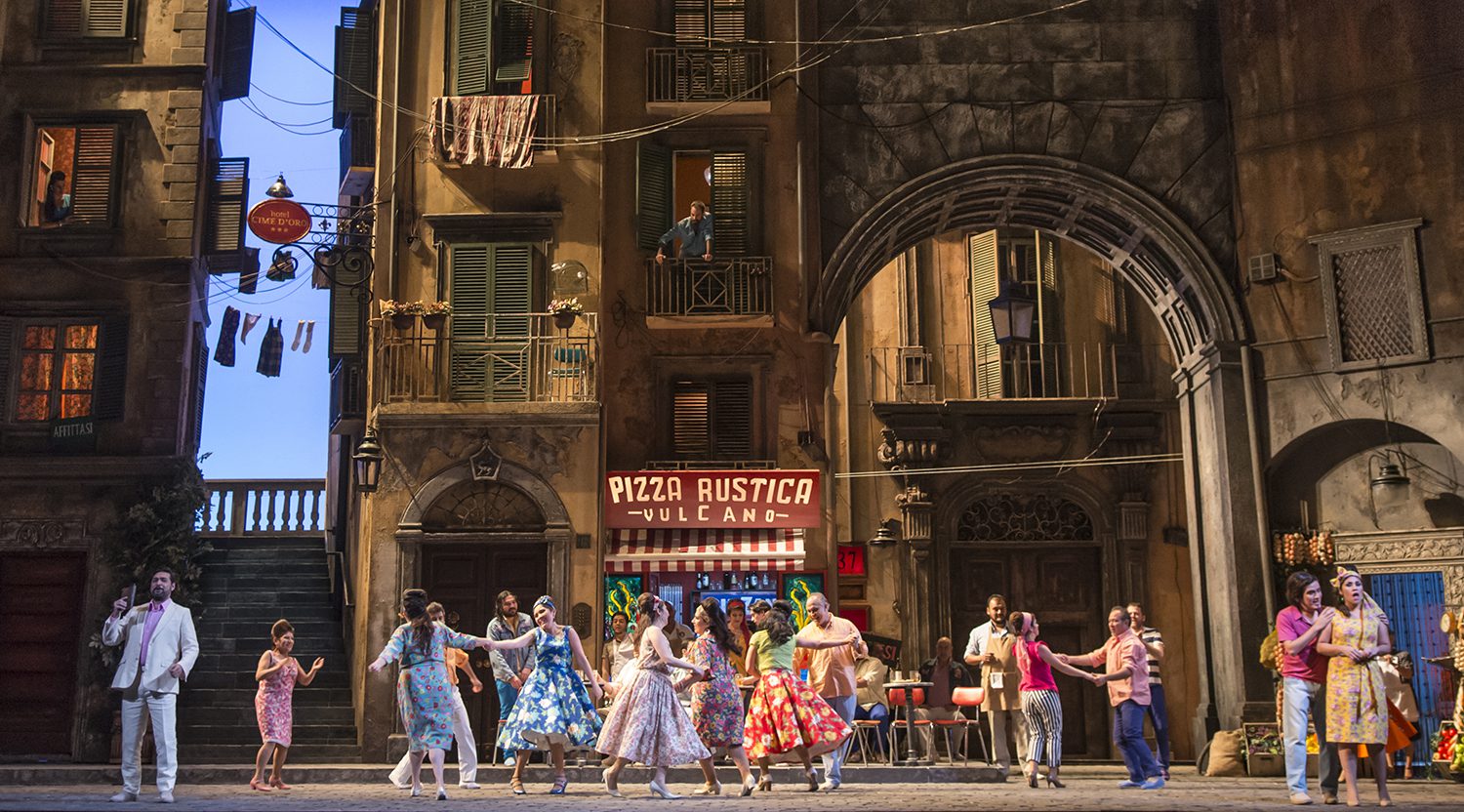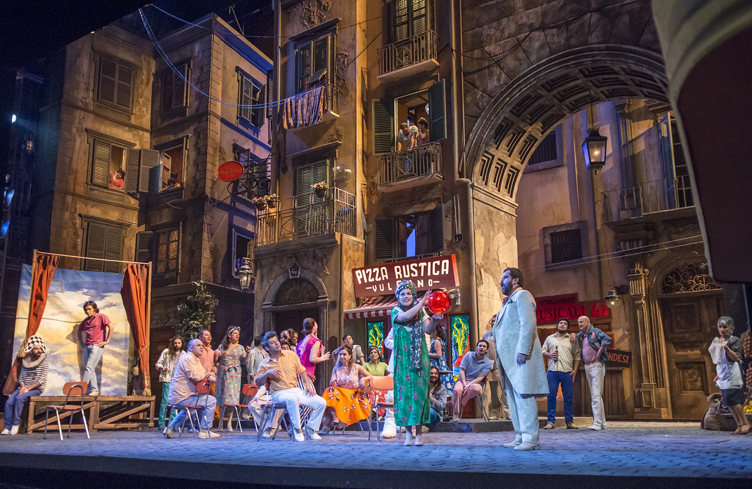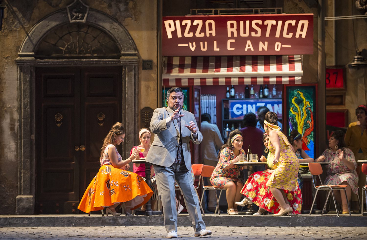 Creemos asimismo, que en una segunda oportunidad, se aprecia mejor, el continuo que logra la règie de Sagi, pues a lo largo de toda la ópera, nada se interpone, o menoscaba a los cantantes principales, sobre todo considerando que siempre está fluyendo la vida en este rincón de Nápoles, donde se desarrolla la trama, tanto en la Pizzería Vulcano,  como en las dos calles, y en los departamentos de los edificios de esas calles; sin duda una demostración magnífica de lo que es una excelente règie.