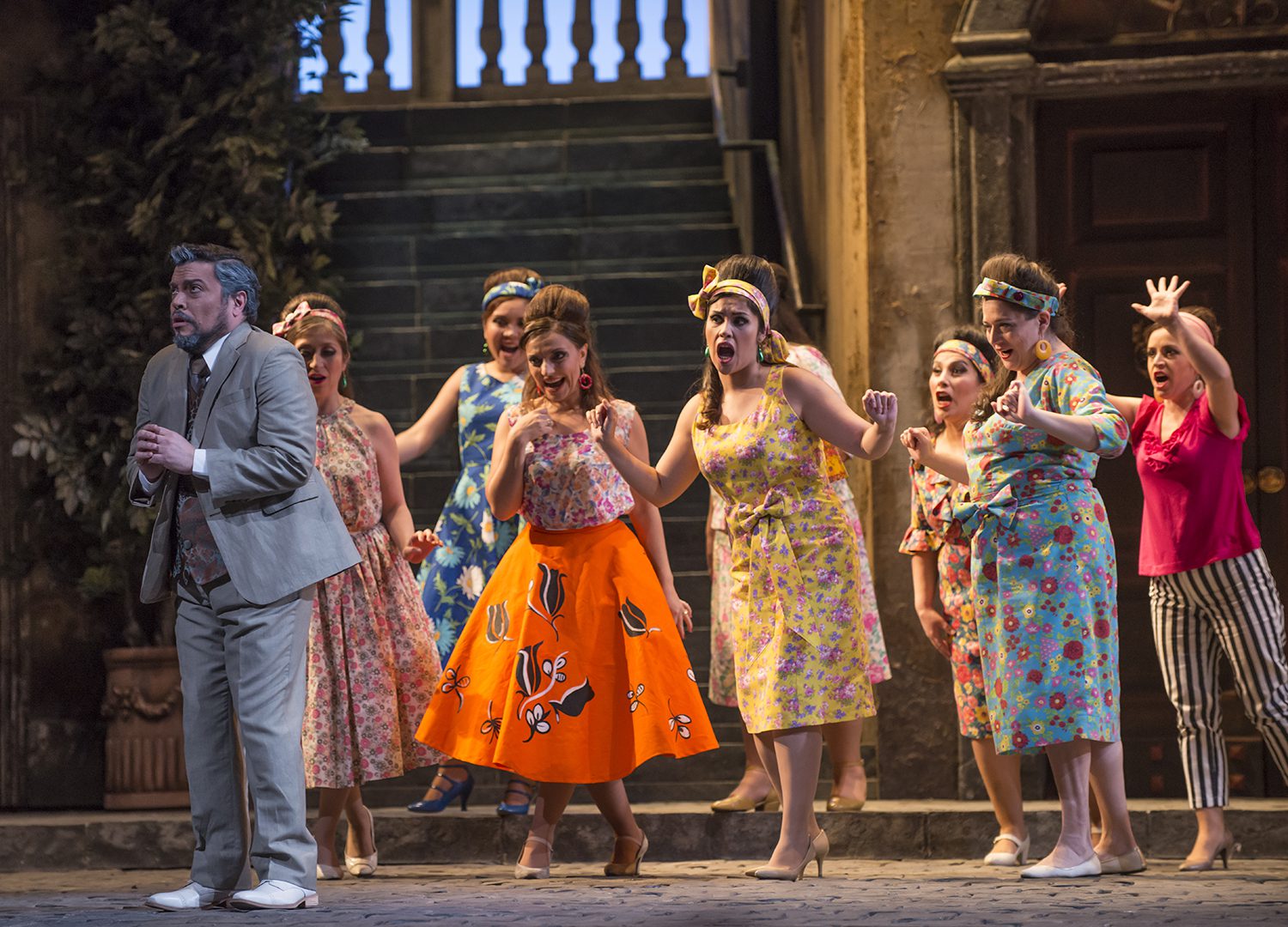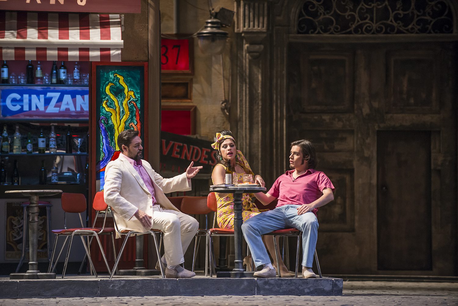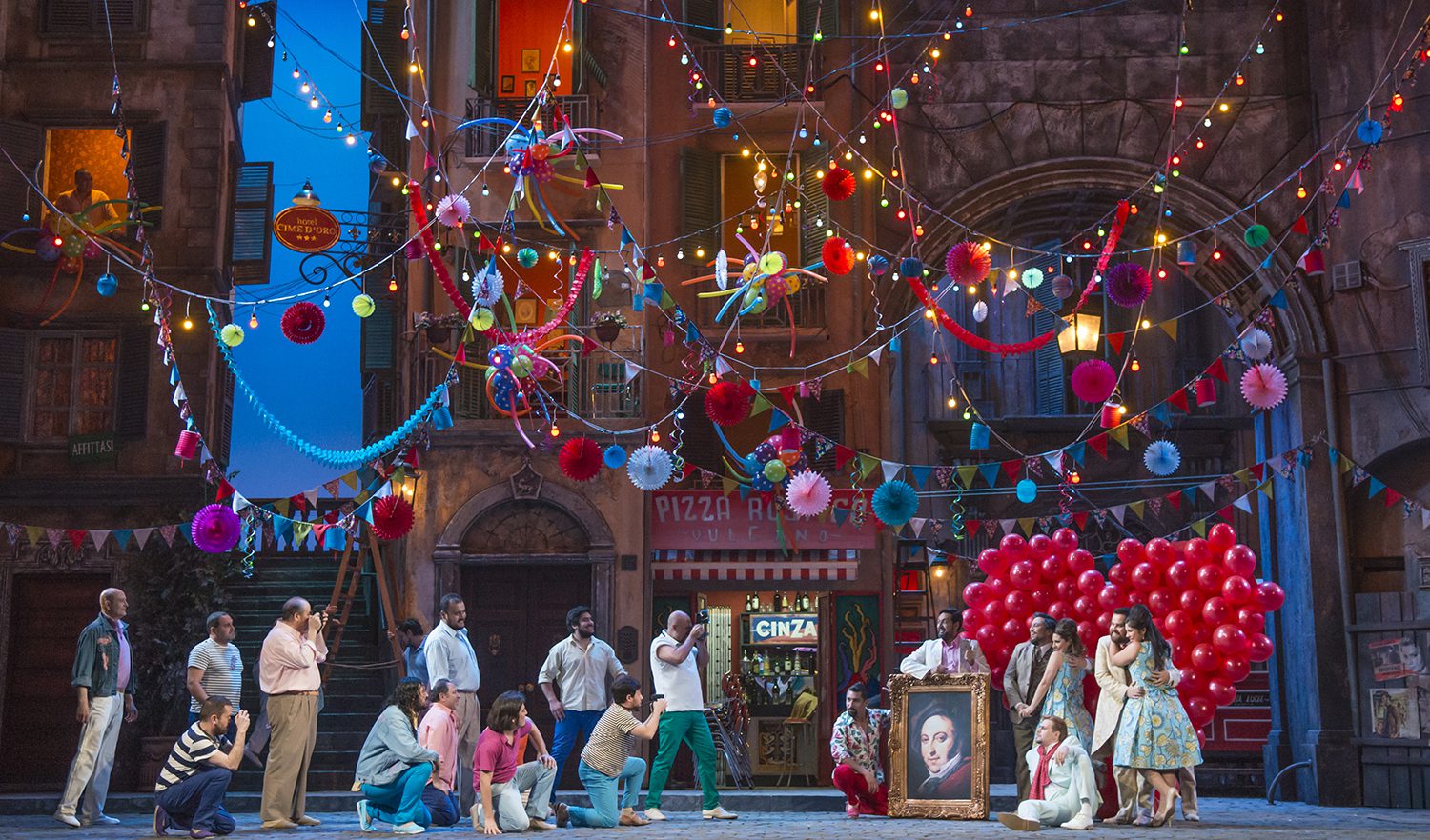 Creemos asimismo, que en una segunda oportunidad, se aprecia mejor, el continuo que logra la règie de Sagi, pues a lo largo de toda la ópera, nada se interpone, o menoscaba a los cantantes principales, sobre todo considerando que siempre está fluyendo la vida en este rincón de Nápoles, donde se desarrolla la trama, tanto en la Pizzería Vulcano,  como en las dos calles, y en los departamentos de los edificios de esas calles; sin duda una demostración magnífica de lo que es una excelente règie.