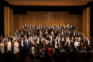 La sección masculina del Coro del Municipal de Santiago, reeditando su actuación con el elenco internacional.